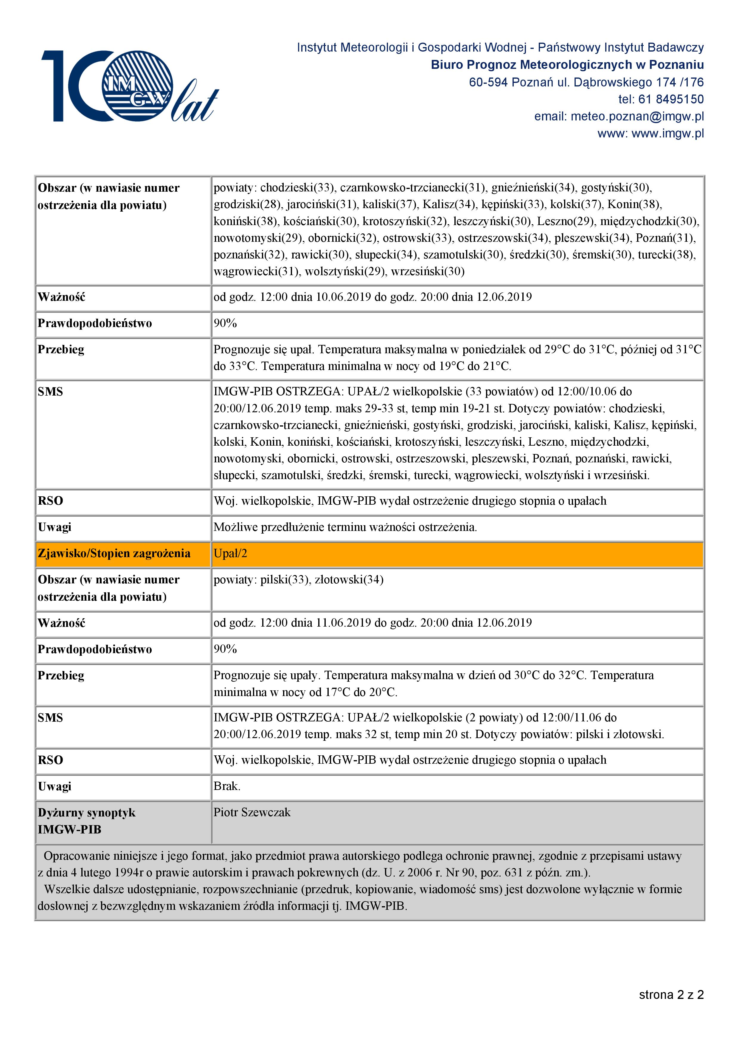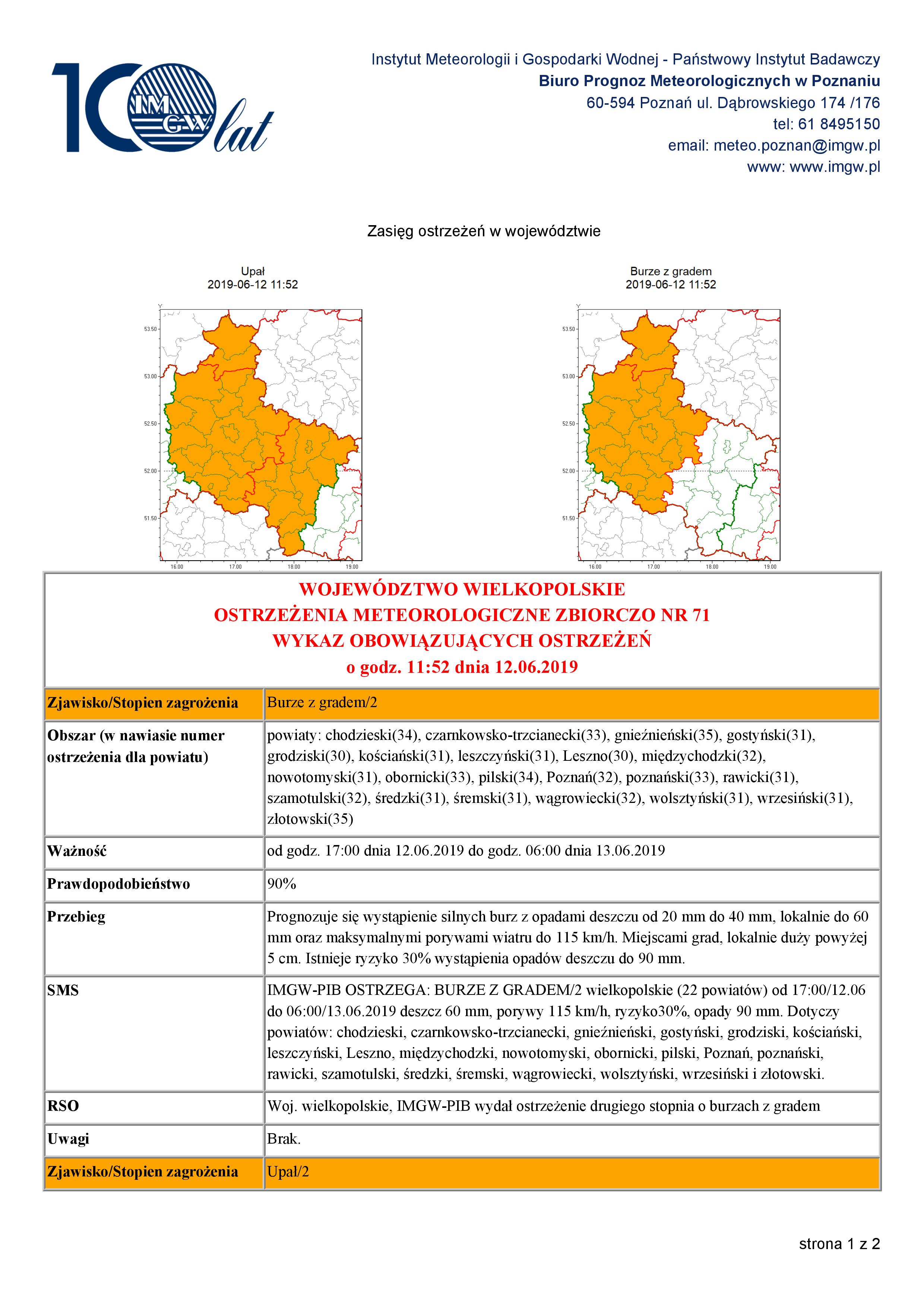 Ostrzeżenia wydane przez Instytut Meteorologii i Gospodarki Wodnej - Państwowy Instytut Badawczy