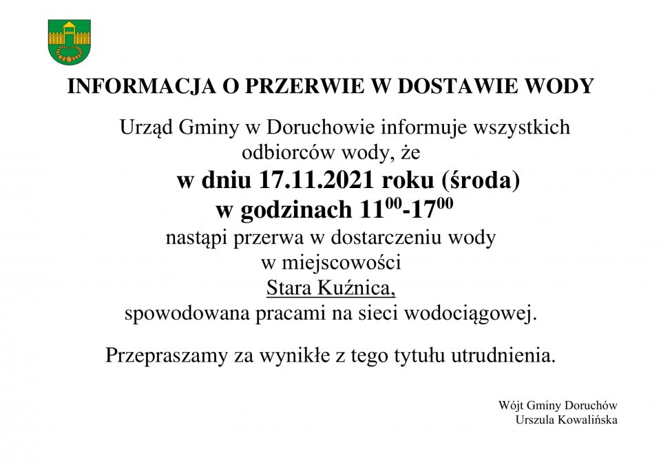 Przerwa w dostawie wody