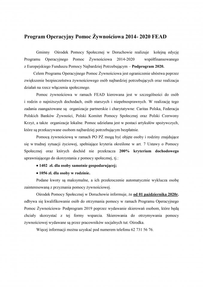 Program Operacyjny Pomoc Żywnościowa 2014-2020 FEAD