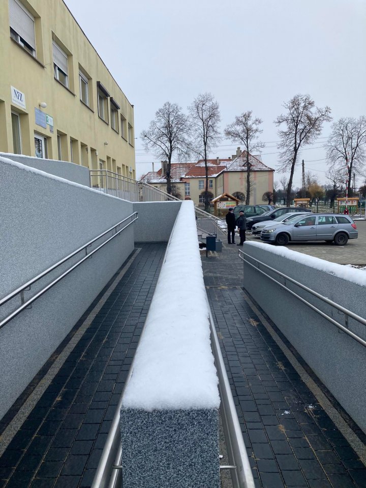 W ramach inwestycji powstał parking, nowe schody zewnętrzne wraz z podestem, podjazd dla osób z niepełnosprawnościami oraz matek z dziećmi w wózkach. Zagospodarowano również pas zieleni, który będzie cieszył oko z nadejściem wiosny.