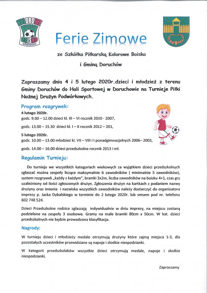 5 lutego - turniej piłki nożnej drużyn podwórkowych, hala Doruchów, godz. 10:00