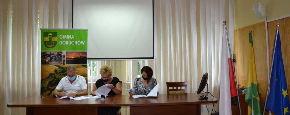 W siedzibie Urzędu Gminy w Doruchowie dnia 23.06.2021 podpisano umowę na realizację zadania pn. " Przebudowa drogi gminnej nr 840556P Pieczyska-Godziętowy-Doruchów w m. Pieczyska".