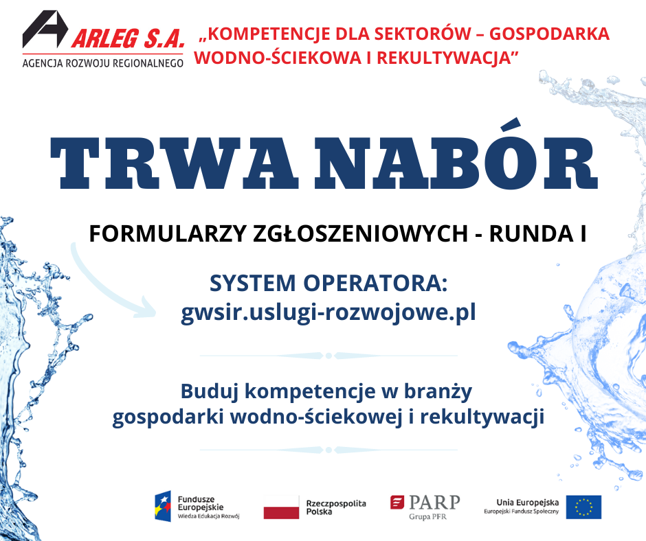 Informacja dla przedsiębiorców - "Kompetencje dla sektorów – gospodarka wodno-ściekowa i rekultywacja"