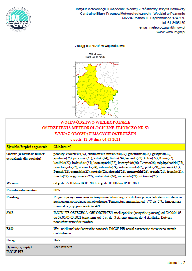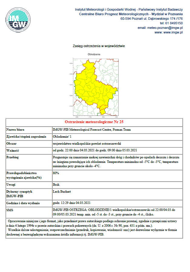 Ostrzeżenie pogodowe 04.03.2021