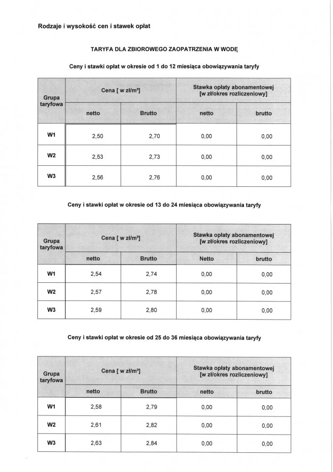 Nowe taryfy dla zbiorowego zaopatrzenia w wodę i odprowadzania ścieków na okres trzech lat