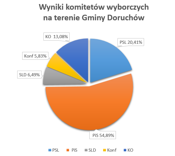 Na terenie Gminy Doruchów w wyborach do Sejmu RP i Senatu RP było 4171 uprawnionych wyborców, wydano 2319 kart w tym 41 głosy były nieważne. Frekwencja na terenie gminy wyniosła 55,59 %.