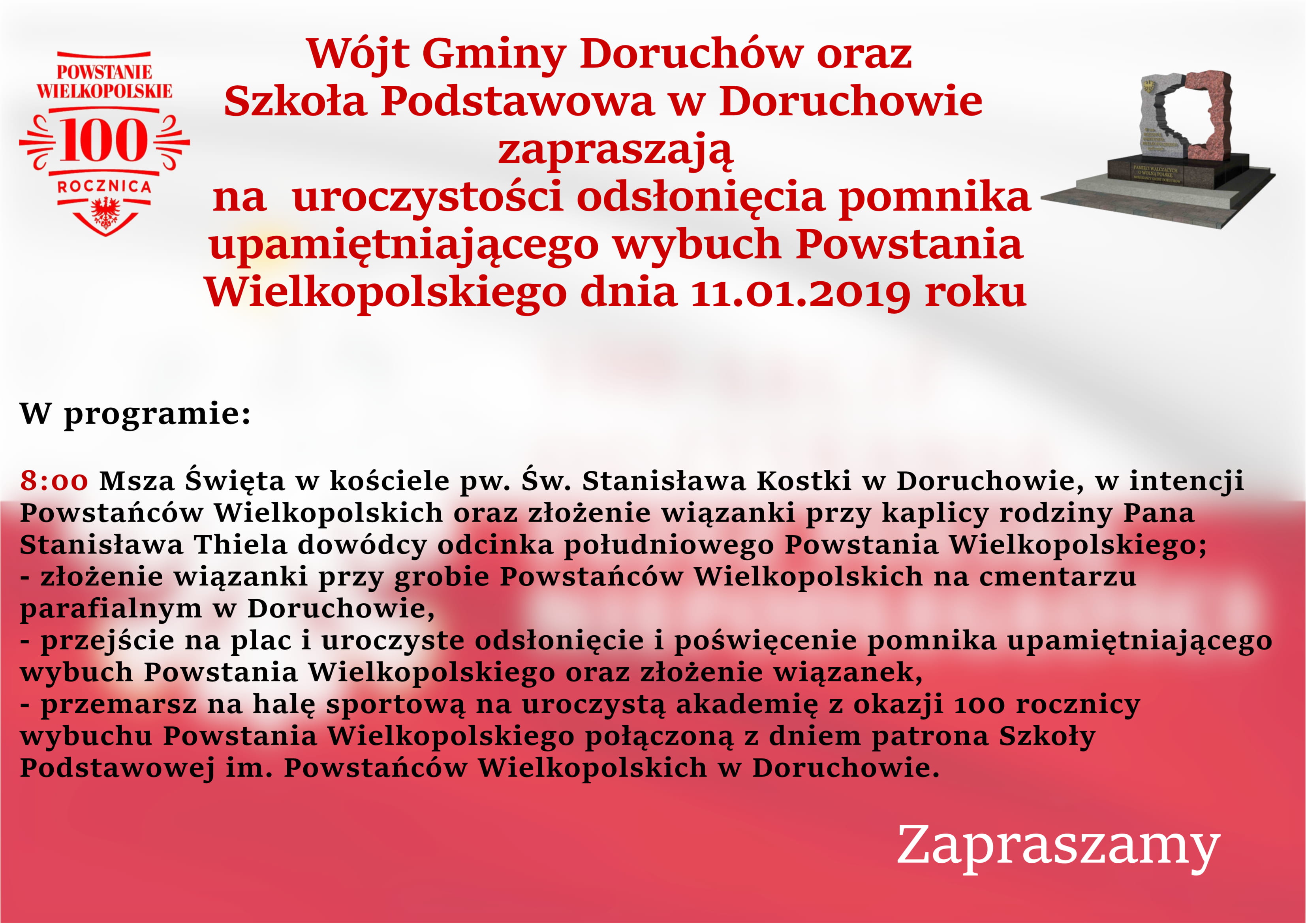 Zaproszenie na odłonięcie pomnika