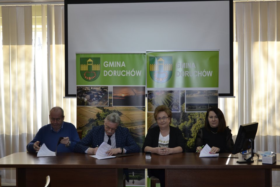 Dnia 02 marca 2022roku w siedzibie Urzędu Gminy w Doruchowie podpisano umowę na realizację zadania pn. „Przebudowa dróg gminnych nr 840565P,840586P,840548P Etap I i II, 840590P”. Całkowity koszt inwestycji to 4 220 649,98 zł.