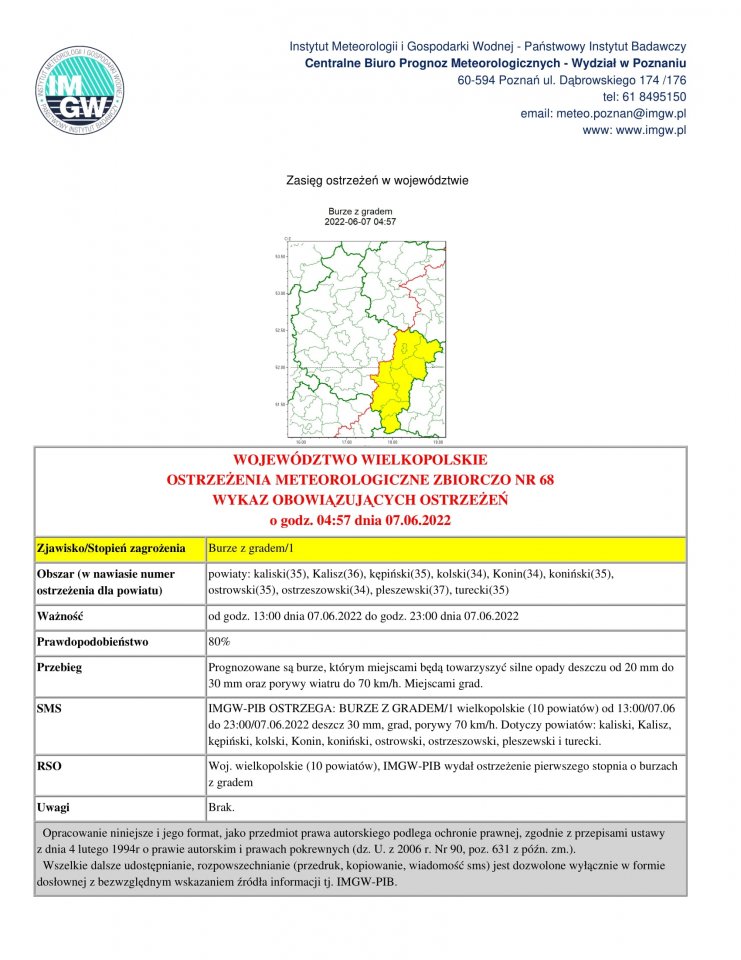 Ostrzeżenie pogodowe 07.06.2022