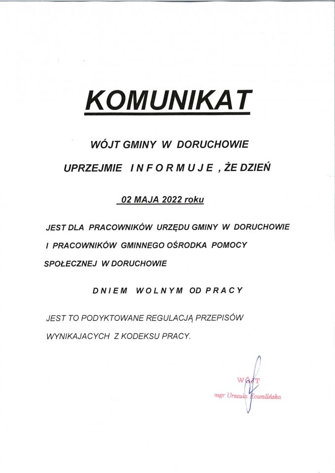 tel.: +48.627363221, fax: +48.627363240, email: ug@doruchow.pl, http://www.doruchow.pl