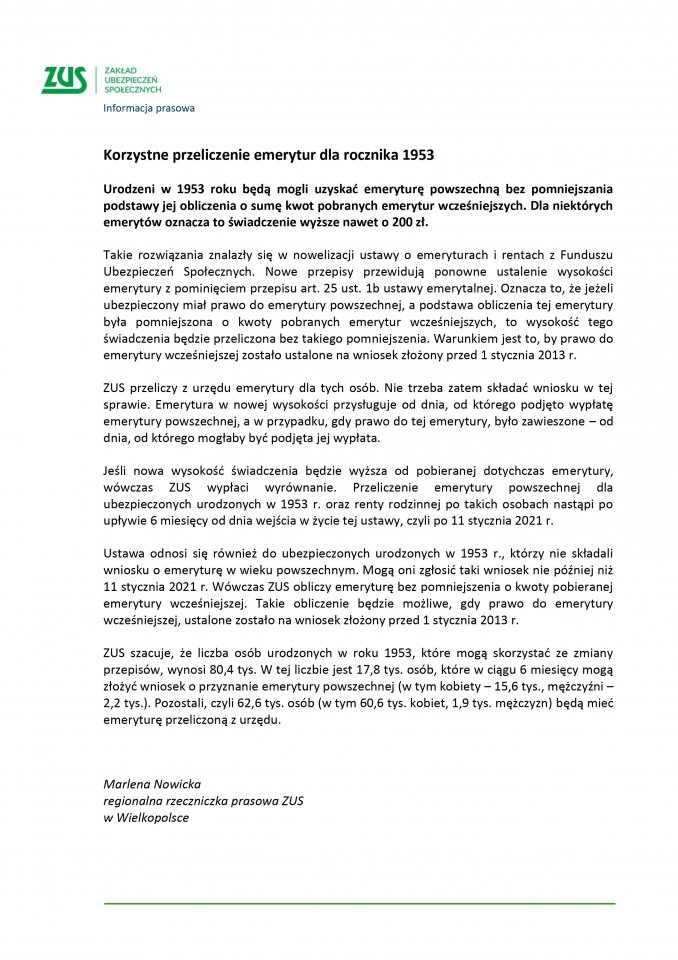 Przeliczenie emerytur dla rocznika 1953