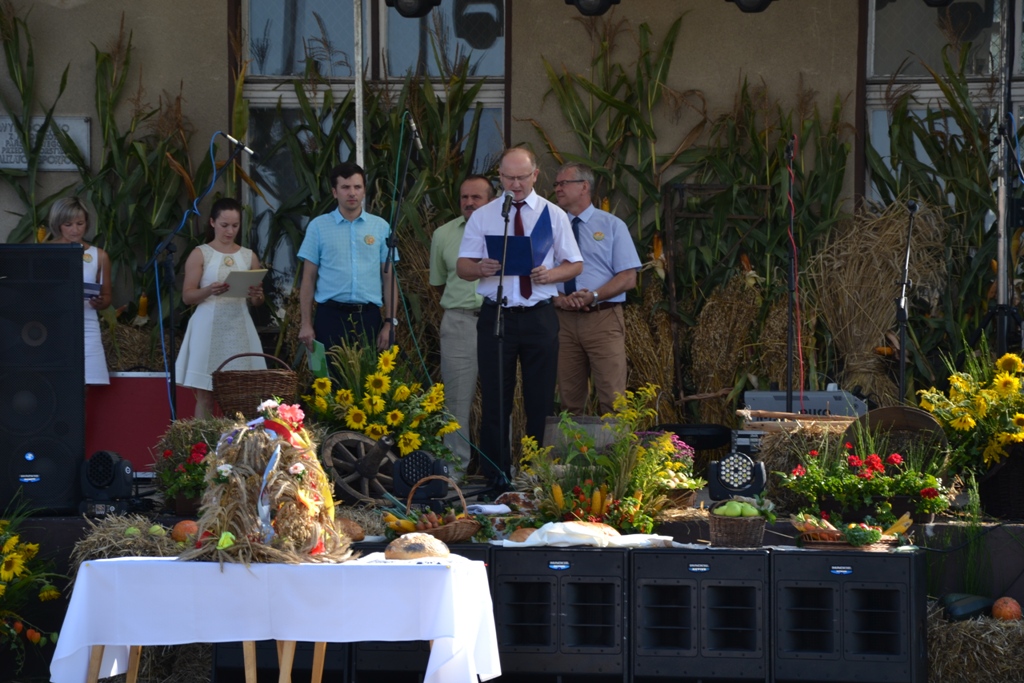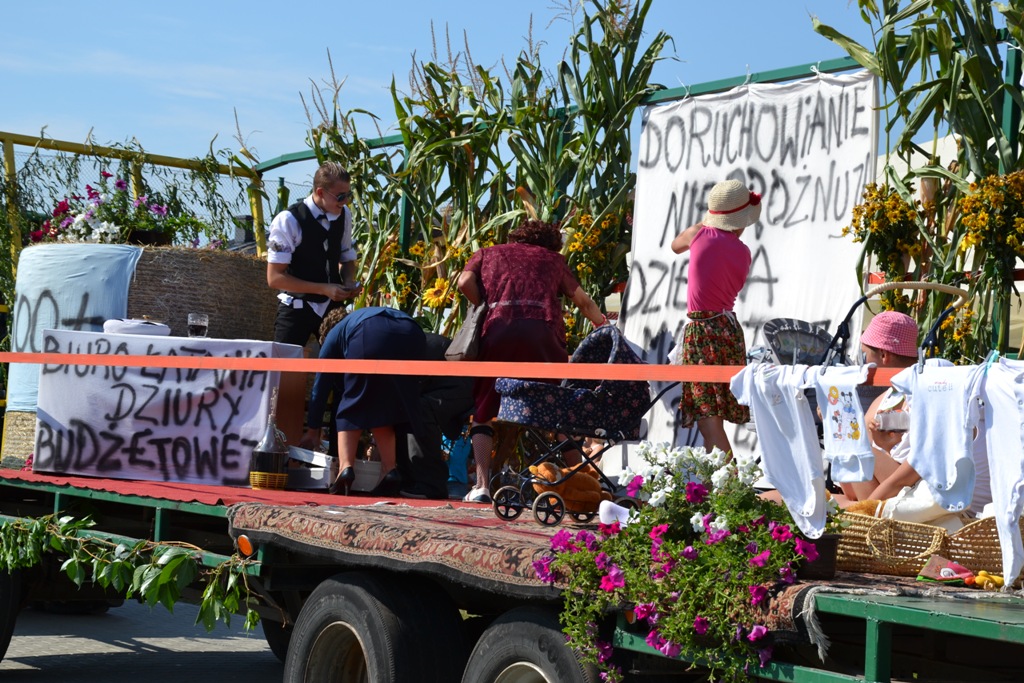 Druga część uroczystości miała miejsce na stadionie miejskim w Doruchowie. O godzinie 15:00 rozpoczął ją przejazd korowodu dożynkowego, na czele którego wieziony był wieniec przez Starostów tegorocznych Dożynek. Podziwiać można było również nowoczesne maszyny rolnicze. Uroczystego przekazania wieńca i chleba na ręce Gospodarza Dożynek Józefa Wilkosza dokonali Starostowie Dożynek Renata Witoń i Janusz Wróbel. W uroczystości brali również udział zaproszeni przedstawiciele parlamentu i władz samorządowych różnych szczebli.