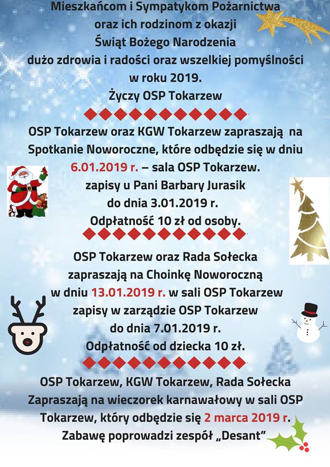 OSP Tokarzew przesyła życzenia oraz zaprasza na wydarzenia, które odbędą się już niebawem
