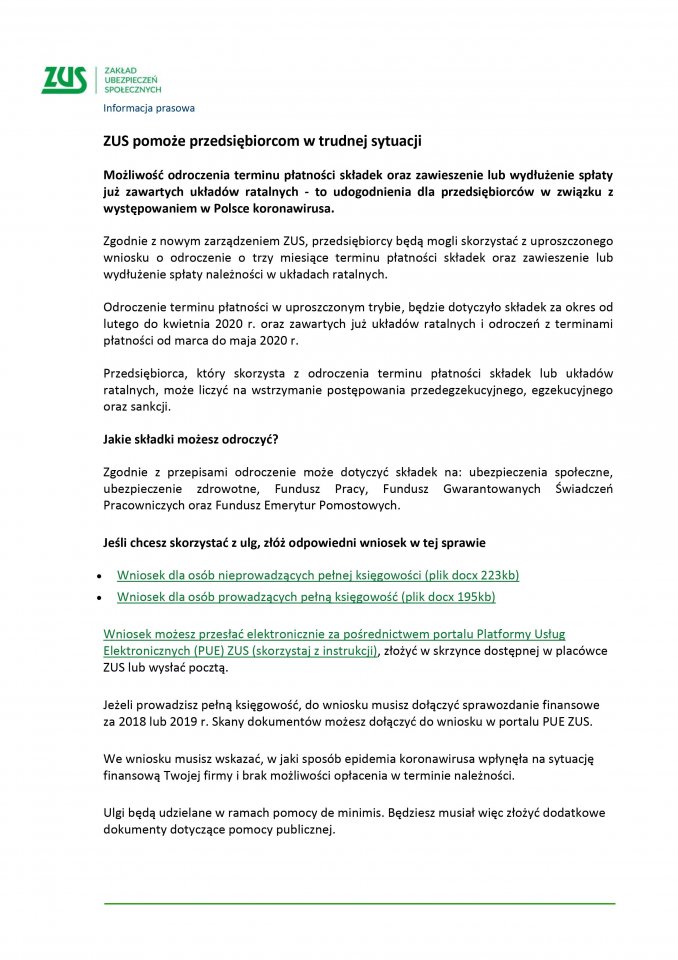 ZUS pomoże przedsiębiorcom w trudnej sytuacji