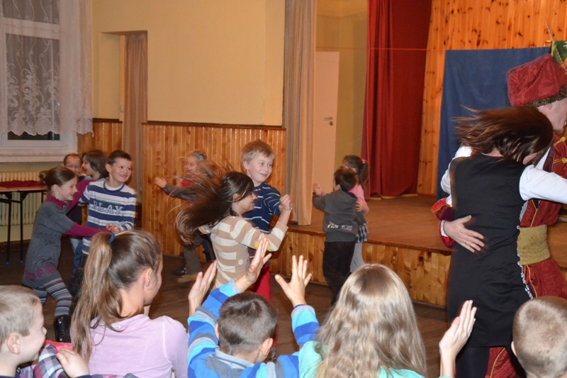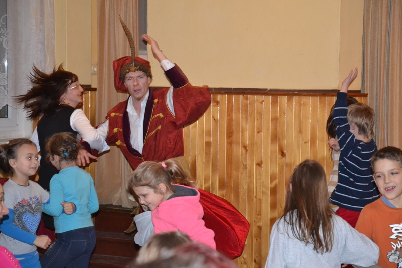 Na zakończenie Studio Teatralne ART-RE z Krakowa zaprezentowało spektakl o Panu Twardowskim, w którym dzieci brały czynny udział.
