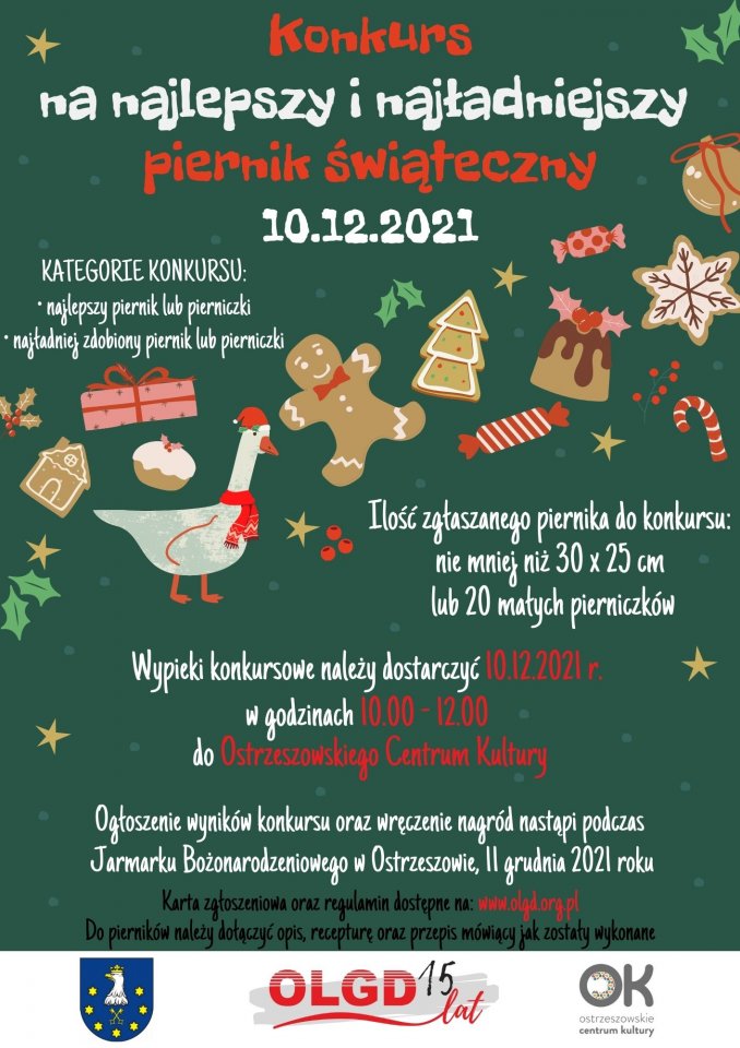 Konkurs odbędzie się 10 grudnia 2021r. w Ostrzeszowie - wypieki konkursowe należy przynosić do Ostrzeszowskiego Centrum Kultury od godz. 10.00 do 12.00