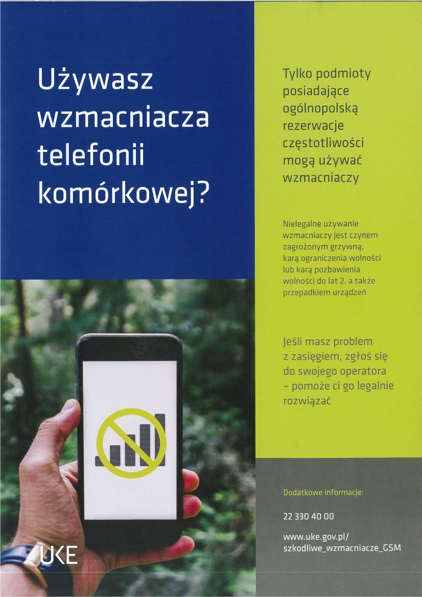 Używanie wzmacniaczy jest nielegalne! Brak sieci należy zgłaszać operatorowi.