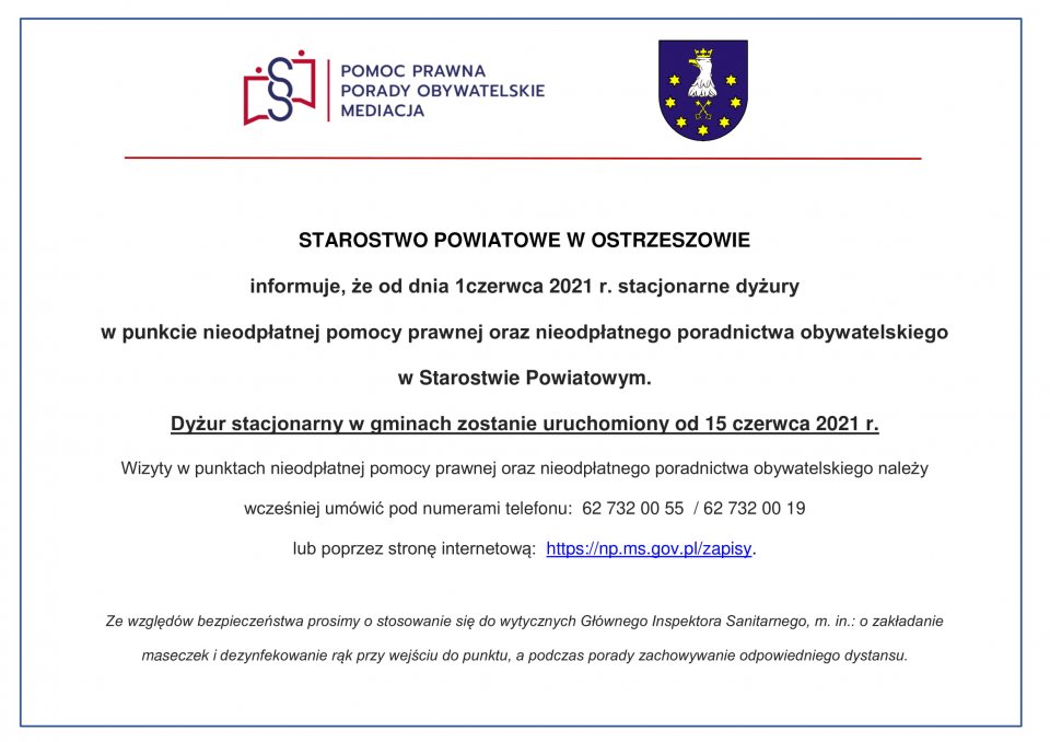 Wznowienie stacjonarnych dyżurów nieodpłatnej pomocy prawnej