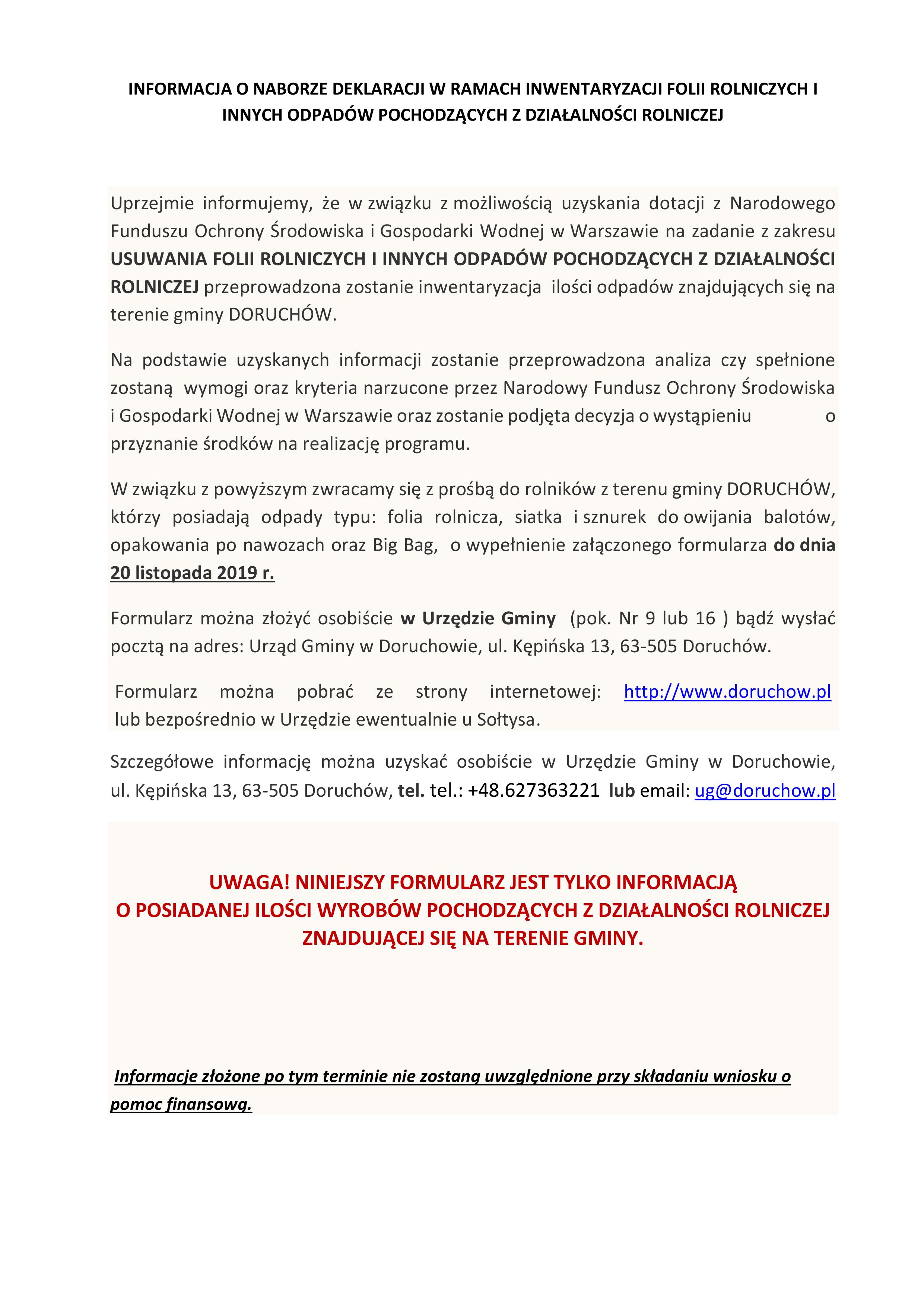 tel.: +48.627363221, fax: +48.627363240, email: ug@doruchow.pl, http://www.doruchow.pl