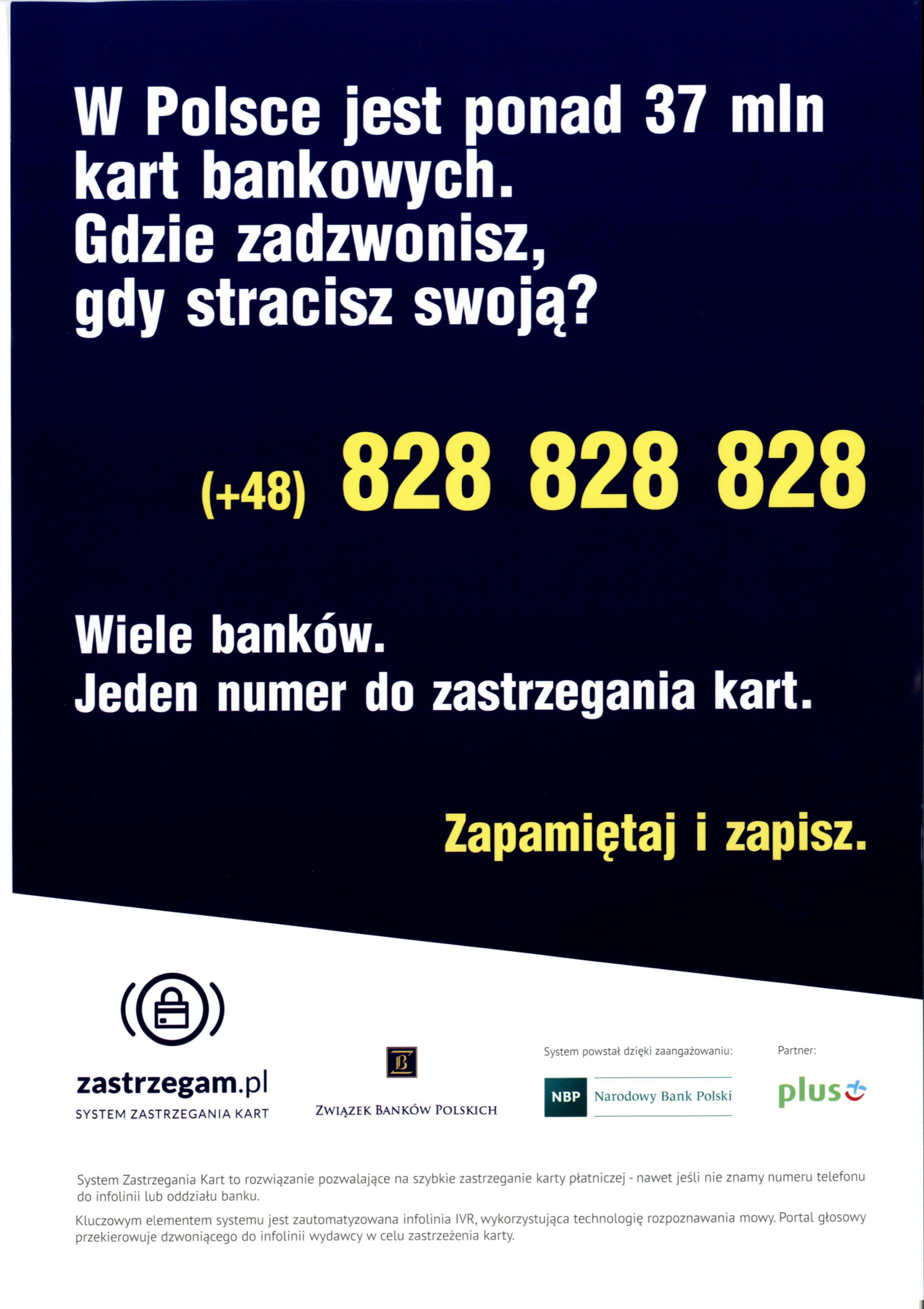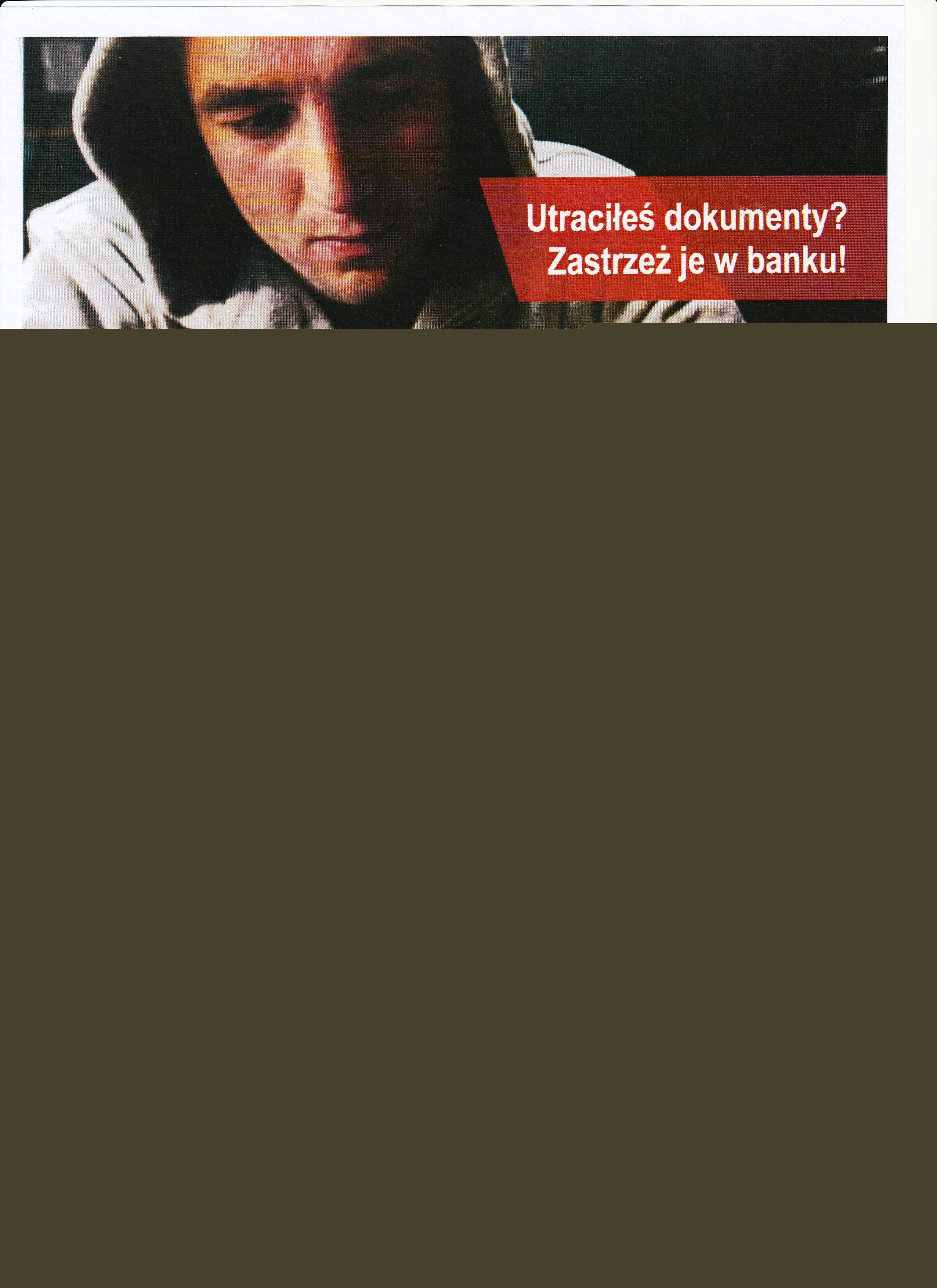 Przekazujemy materiały związane z Kampanią Informacyjną Systemu Dokumenty Zastrzeżone oraz Systemu Zastrzegania Kart. Celem kampanii jest przeciwdziałanie przestępstwom z użyciem skradzionych i zgubionych dokumentów tożsamości. Codziennie przestępcy podejmują dziesiątki prób użycia cudzych dokumentów. Wg danych "Raportu o dokumentach - infoDOK", w II kwartale 2017r. odnotowano 1631 prób wyłudzeń kredytów, na kwotę ponad 114 mln złotych.