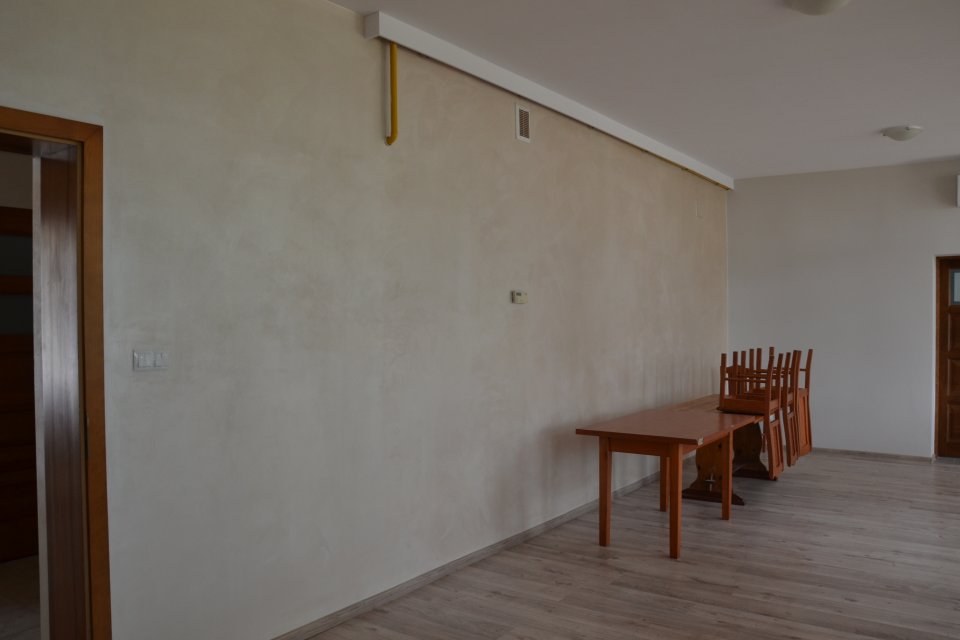 Zakres prac remontowych w Sali w Torzeńcu to odświeżenie ścian wewnętrznych budynku, w tym na sali w części tynkiem mozaikowym oraz modernizacja schodów zewnętrznych.