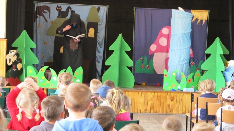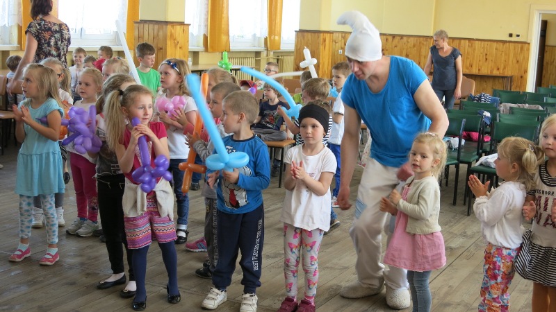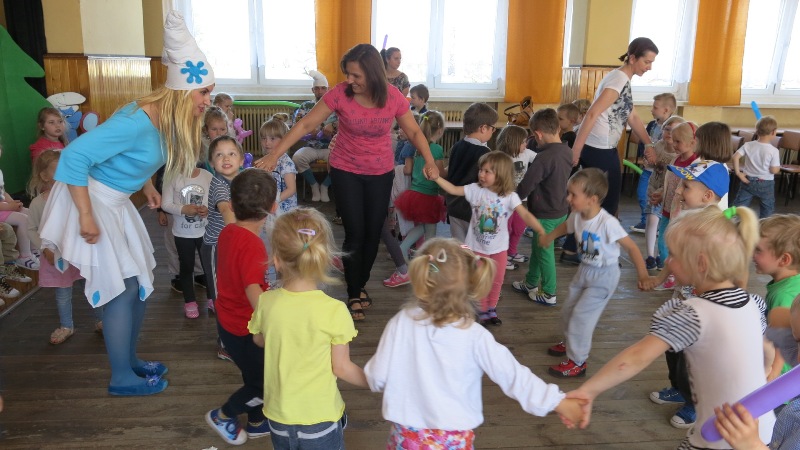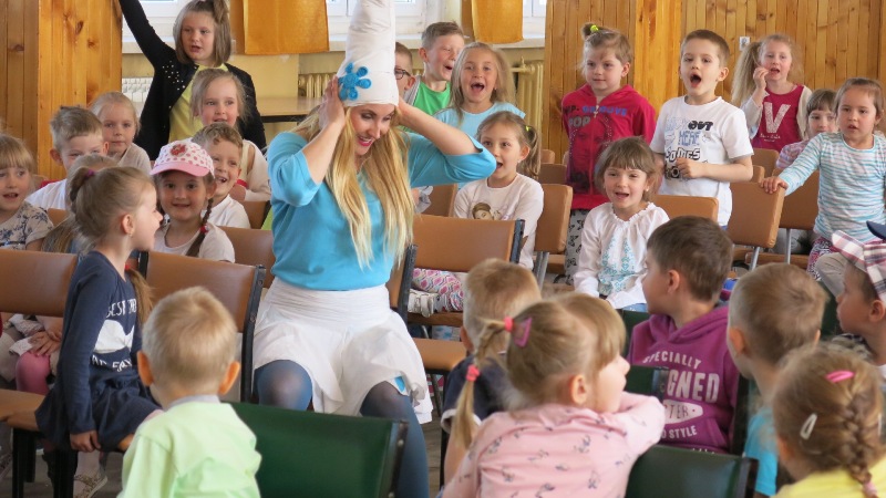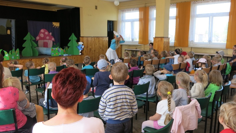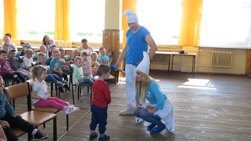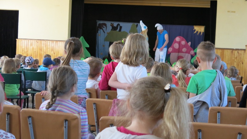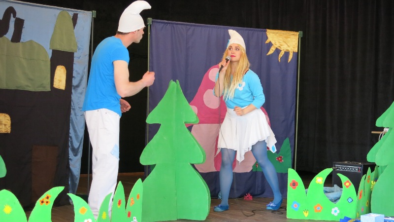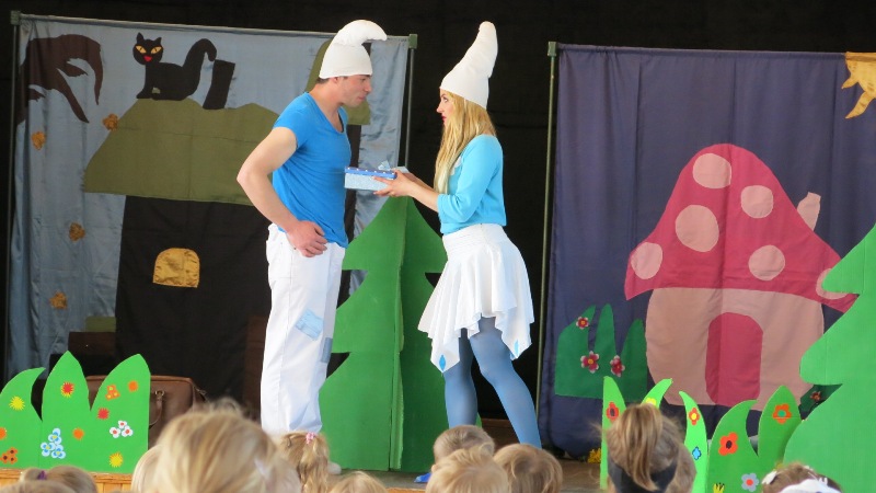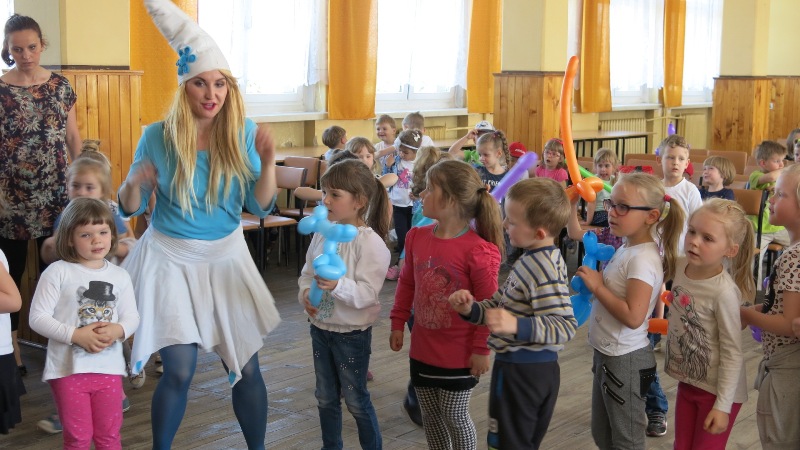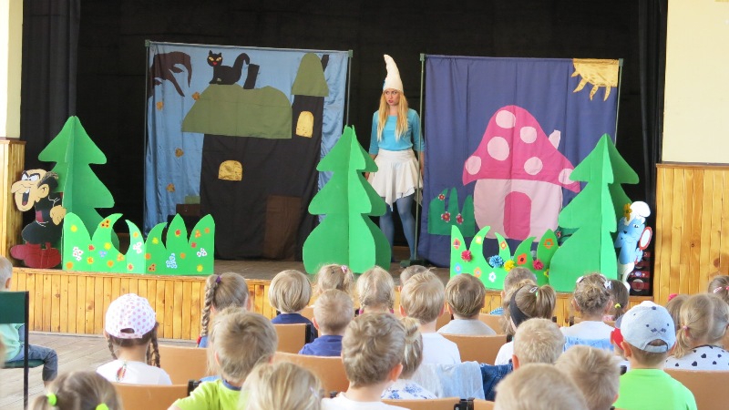Z okazji Ogólnopolskiego Tygodnia Bibliotek, w czwartkowe przedpołudnie 12 maja, odbył się zorganizowany przez Bibliotekę Publiczną interaktywny spektakl Teatru „EDU-ARTIS” z Krakowa, pt. „Z wizytą w Smerfowym Lesie”. W przedstawieniu uczestniczyły wszystkie grupy przedszkolaków z Publicznego Przedszkola w Doruchowie. Bohaterowie znanej bajki o Smerfach: Zgrywus i Smerfetka zachęcali dzieci do dbania o środowisko, ukazując przy tym skutki zanieczyszczenia przyrody. Aktorzy zaskakiwali humorystycznymi dialogami i smerfnymi żartami. Angażowali dzieci do aktywnego udziału w spektaklu m.in. poprzez naukę smerfnej rymowanki oraz smerfnego tańca. Przedszkolaki bawiły się smerfnie:) a po zakończonej bajce wszystkie otrzymały kolorowe baloniki.