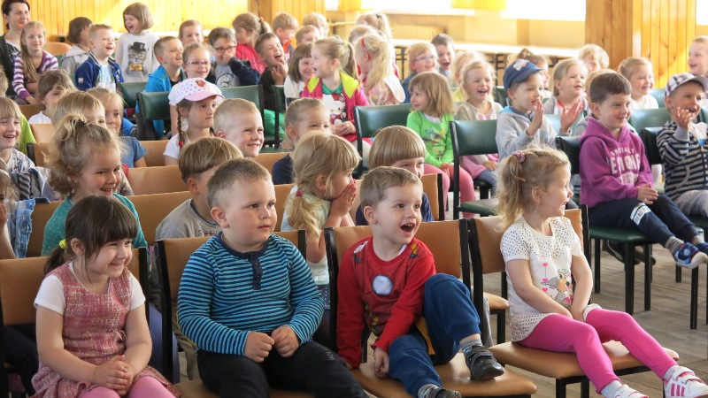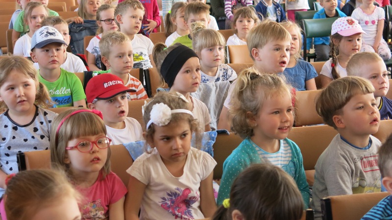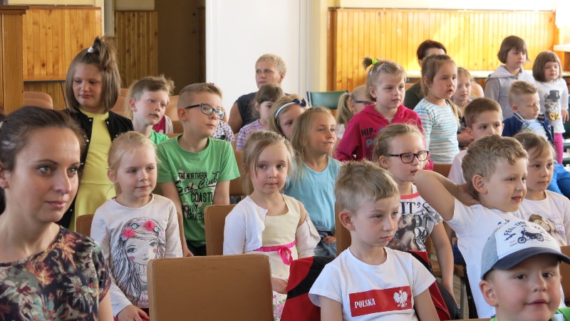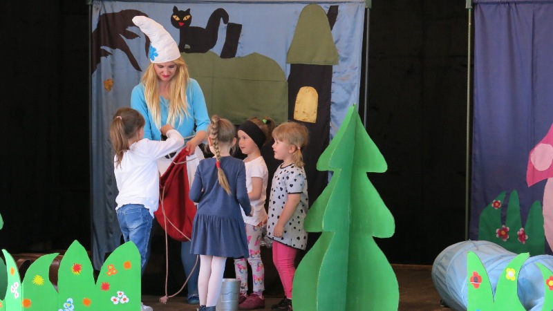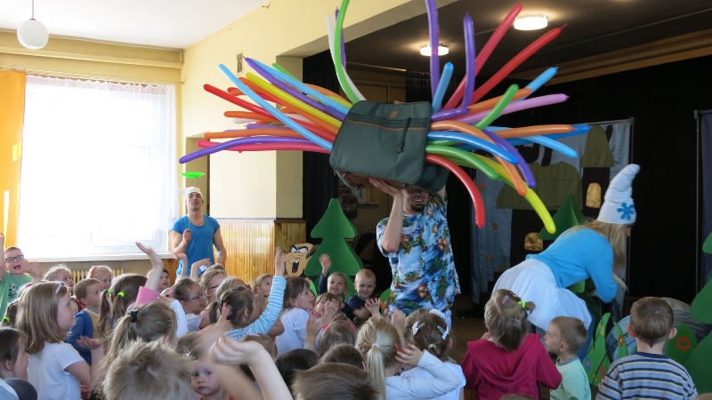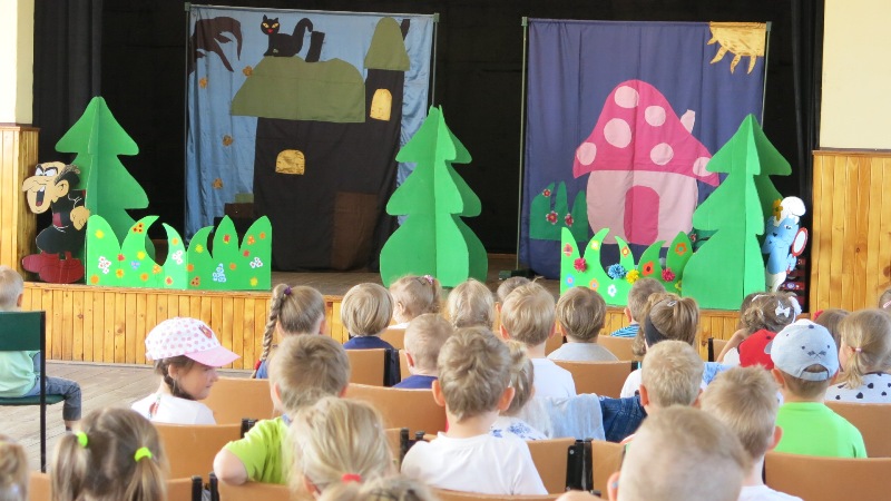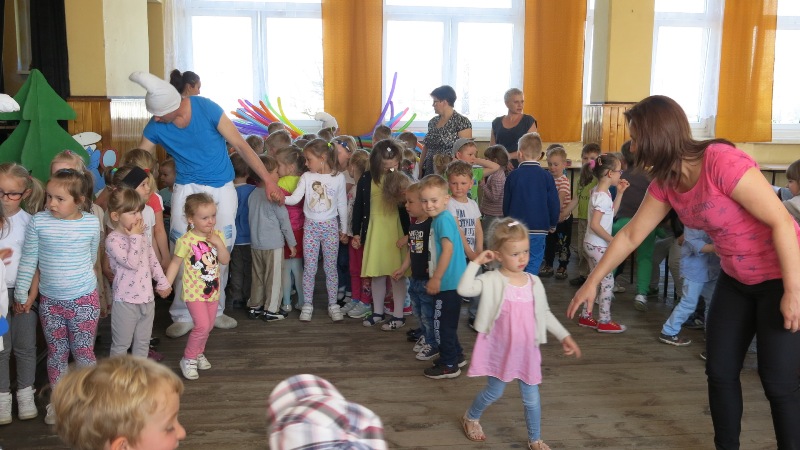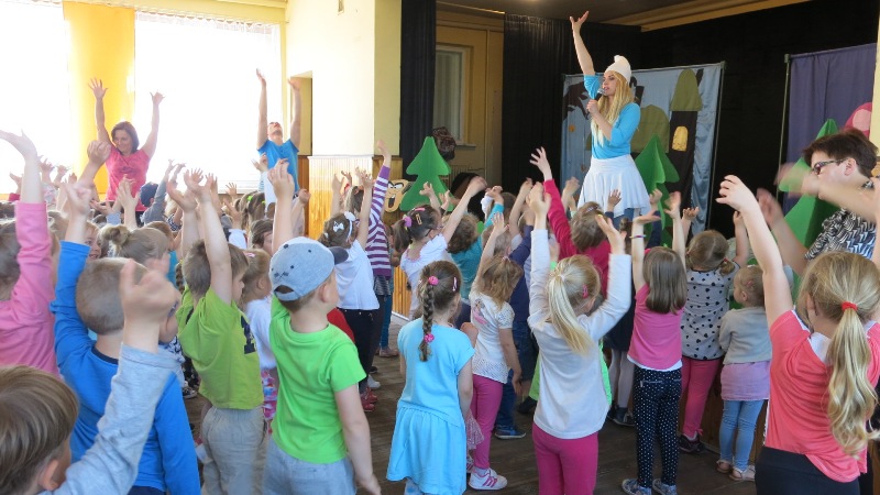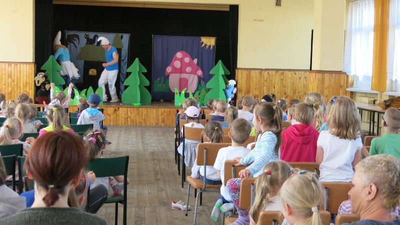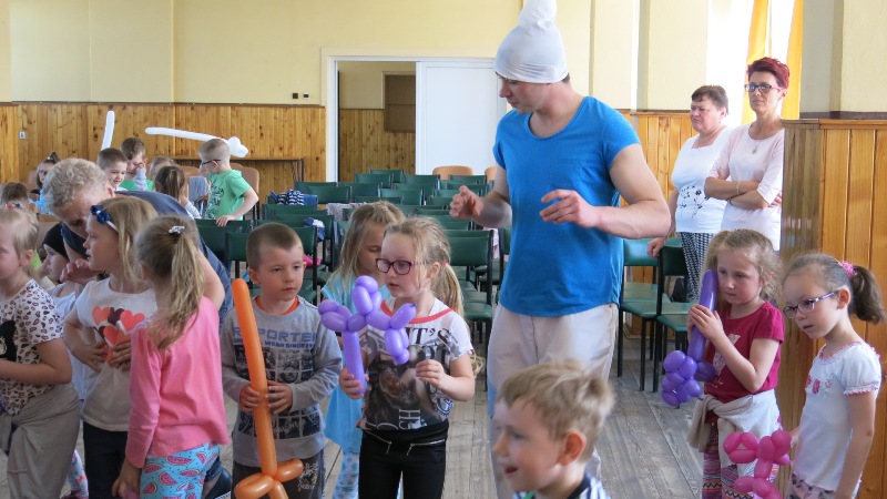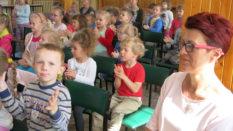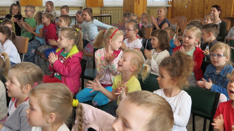 Z okazji Ogólnopolskiego Tygodnia Bibliotek, w czwartkowe przedpołudnie 12 maja, odbył się zorganizowany przez Bibliotekę Publiczną interaktywny spektakl Teatru „EDU-ARTIS” z Krakowa, pt. „Z wizytą w Smerfowym Lesie”. W przedstawieniu uczestniczyły wszystkie grupy przedszkolaków z Publicznego Przedszkola w Doruchowie. Bohaterowie znanej bajki o Smerfach: Zgrywus i Smerfetka zachęcali dzieci do dbania o środowisko, ukazując przy tym skutki zanieczyszczenia przyrody. Aktorzy zaskakiwali humorystycznymi dialogami i smerfnymi żartami. Angażowali dzieci do aktywnego udziału w spektaklu m.in. poprzez naukę smerfnej rymowanki oraz smerfnego tańca. Przedszkolaki bawiły się smerfnie:) a po zakończonej bajce wszystkie otrzymały kolorowe baloniki.