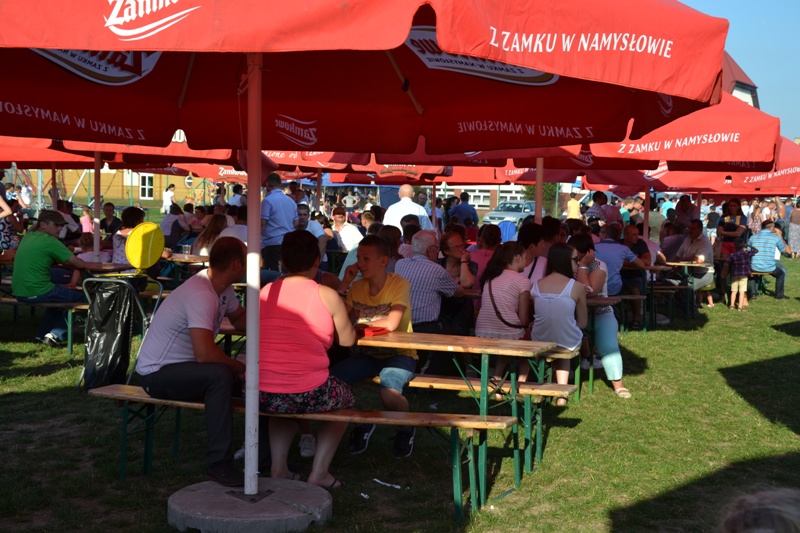 Na wszystkich gości czekały także stoiska z jedzeniem i napojami oraz pyszna grochówka ufundowana przez Gospodarza Dożynek. Najmłodsi mieszkańcy korzystali z darmowych atrakcji w postaci dmuchanych zamków i trampolin. O godzinie 17:00 na dożynkowej scenie wystąpił zespół VERDIS, a zaraz po nim przygrywał wszystkim zespół "Lututowianie".