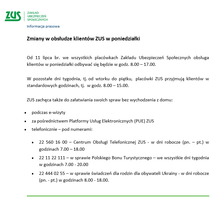 Godziny otwarcia w ZUS