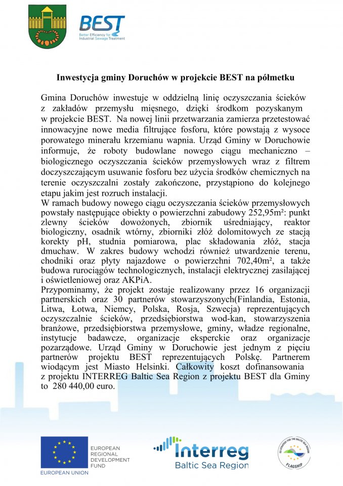 Inwestycja Gminy Doruchów w projekcie BEST na półmetku - budowa oczyszczalni przemysłowej
