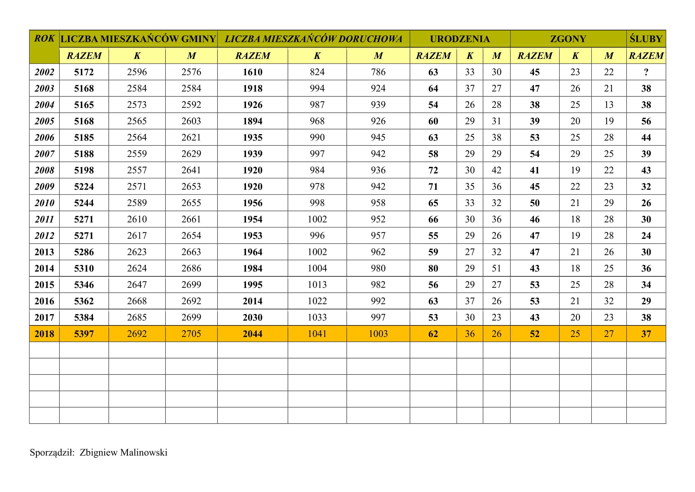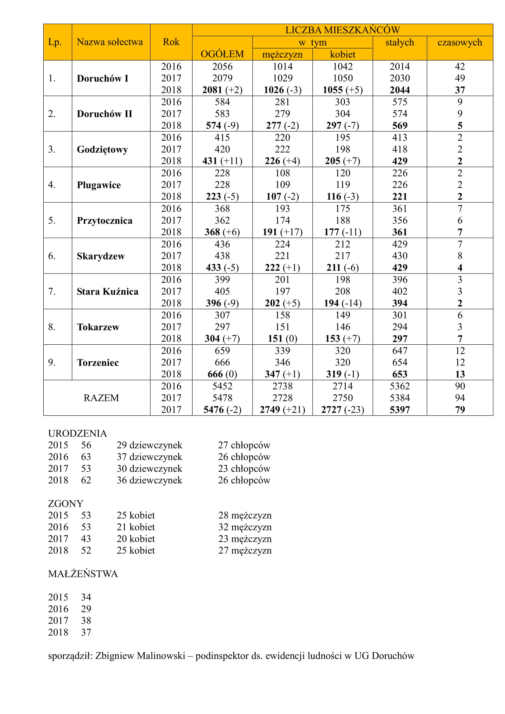 Dane demograficzne Gminy Doruchów za rok 2018