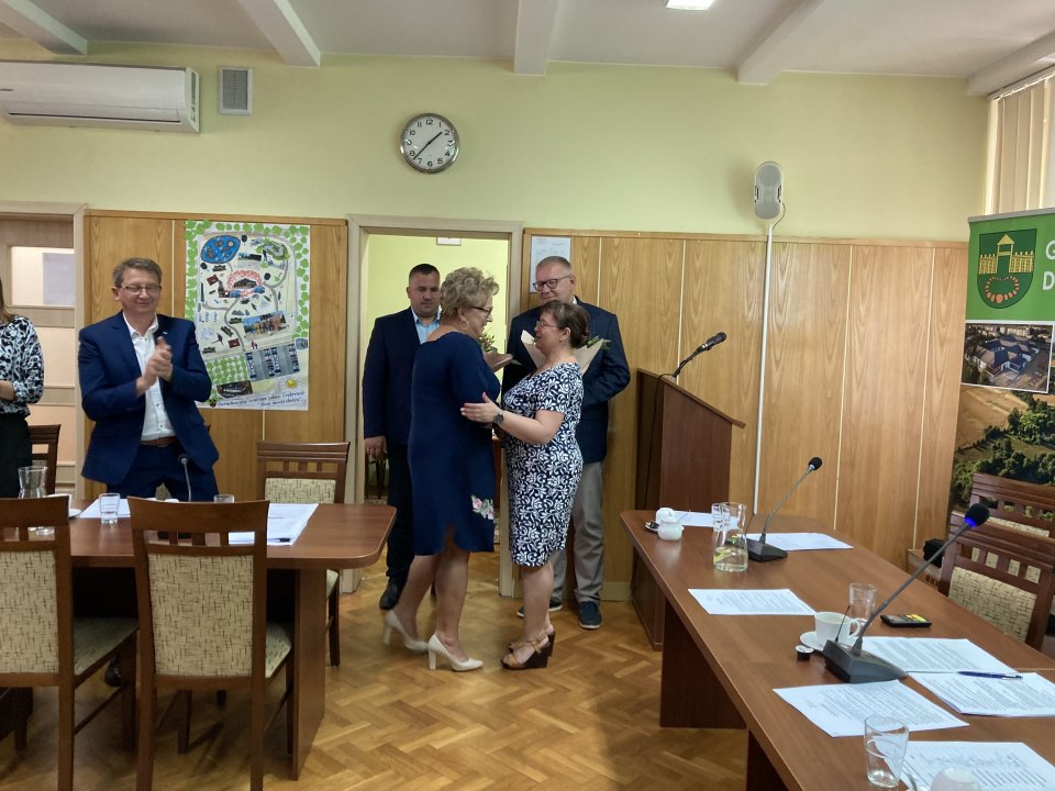 Radni na ręce Wójt oraz Skarbnik złożyli kwiaty w podziękowaniu za dobrą współpracę, życząc dalszych sukcesów i owocnej pracy na rzecz społeczności gminy Doruchów.
