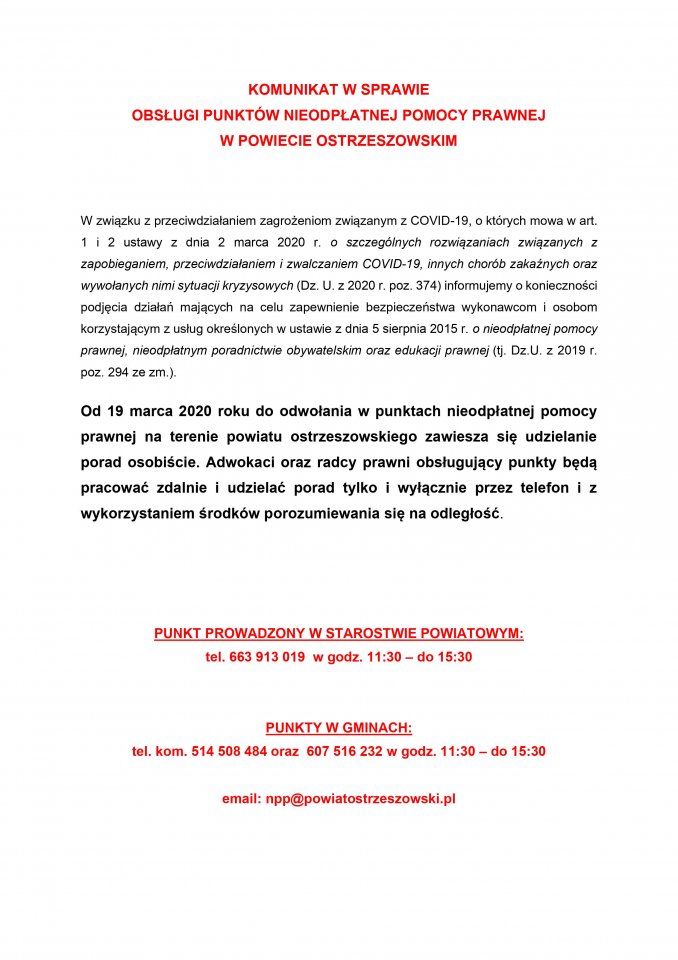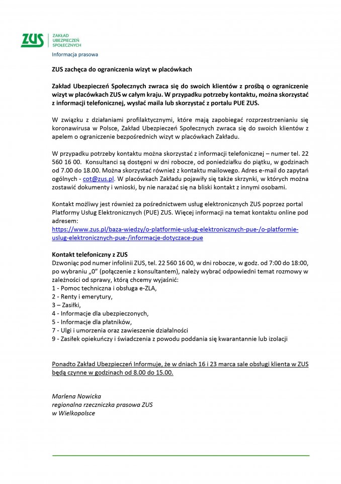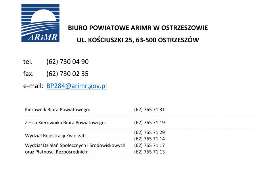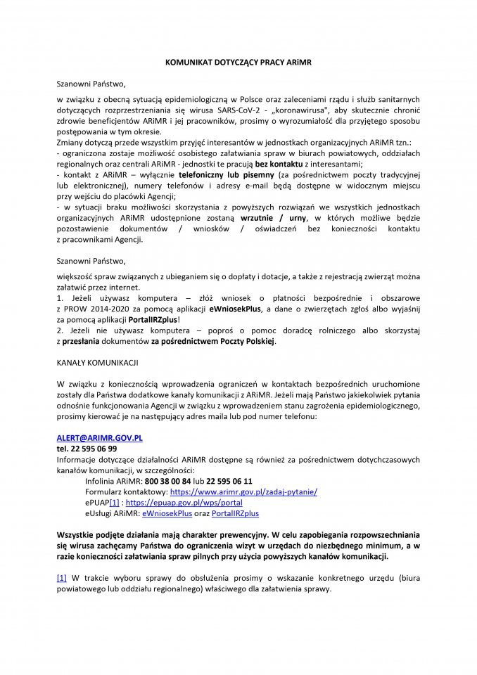 Komunikaty- ZZO Olszowa, ARiMR, ZUS, US, pomoc prawna