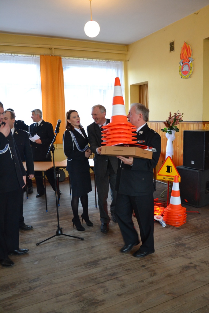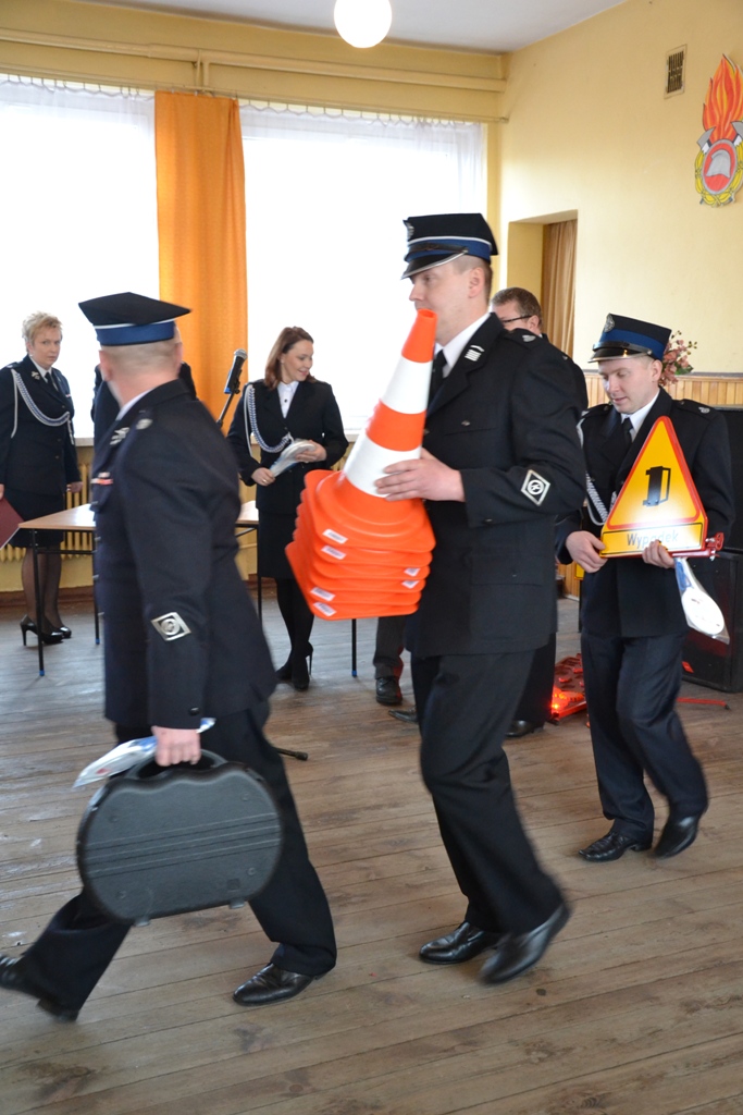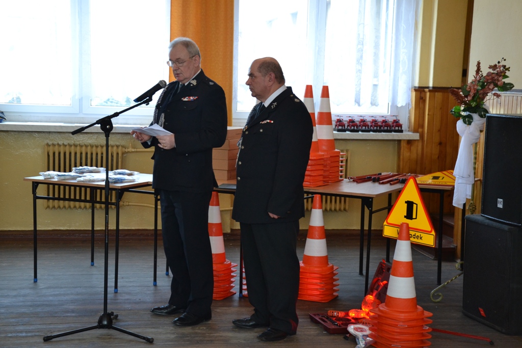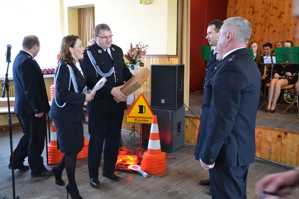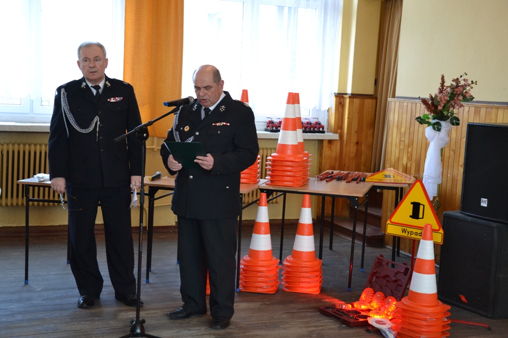 Dyrektor Wojewódzkiego Ośrodka Ruchu Drogowego w Kaliszu, Stanisław Piotrowski wraz z Panią Senator Możdżanowską, V-ce Marszałkiem Grabowskim oraz druhem Serbiakiem dokonali uroczystego przekazania sprzętu ostrzegawczego do zabezpieczania działań na drogach (tj. dyski sygnalizacyjne M-Flare, znak drogowy ostrzegający o zdarzeniu drogowym, lizaki do kierowania ruchem oraz pachołki). Sprzęt otrzymali: