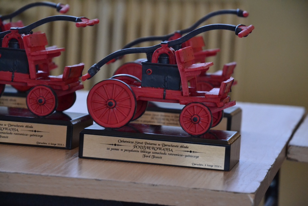 W dowód wdzięczności przekazali zostały przekazane przedstawicielom instytucji statuetki wozu strażackiego.