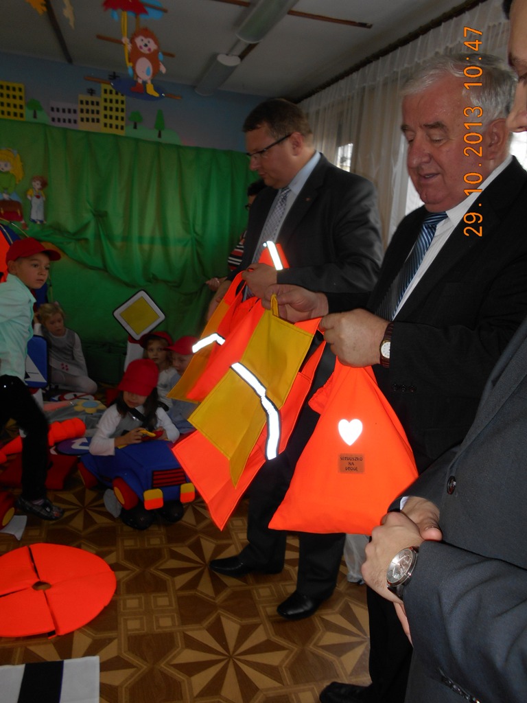 Dodatkowo każdy z maluchów otrzymał kamizelkę odblaskową do użycia w pieszych i rowerowych spacerach czy wycieczkach oraz odblaskowe serduszko.