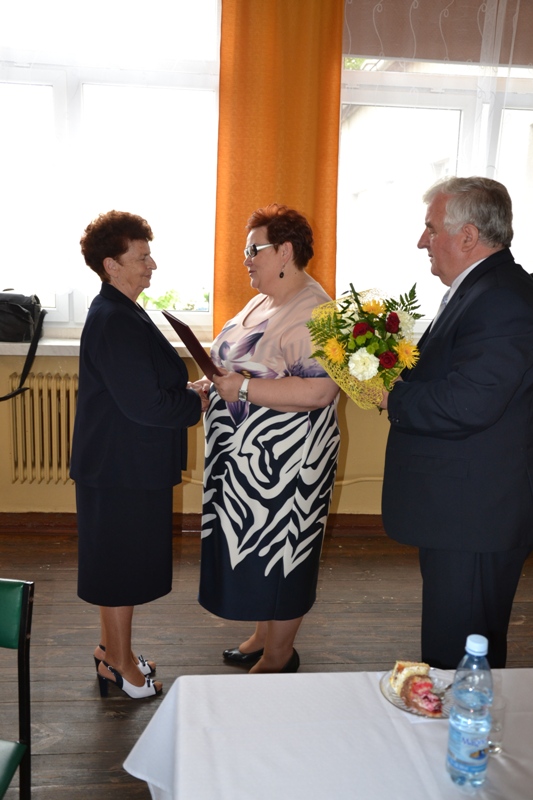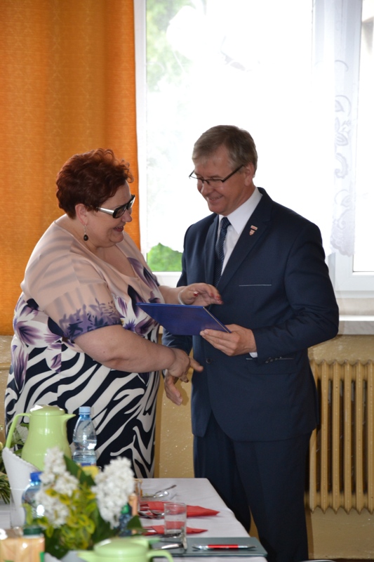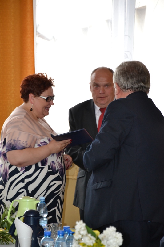 Podczas spotkania gospodarze uroczystości, Przewodnicząca Rady Gminy Joanna Blewąska oraz Wójt Józef Wilkosz złożyli na ręce żony zmarłego śp. Kazimierza Thiela akt nadania pośmiertnie tytułu „Honorowy Obywatel Gminy Doruchów” uchwalony podczas sesji Rady Gminy Doruchów w dniu 23 kwietnia 2015r.