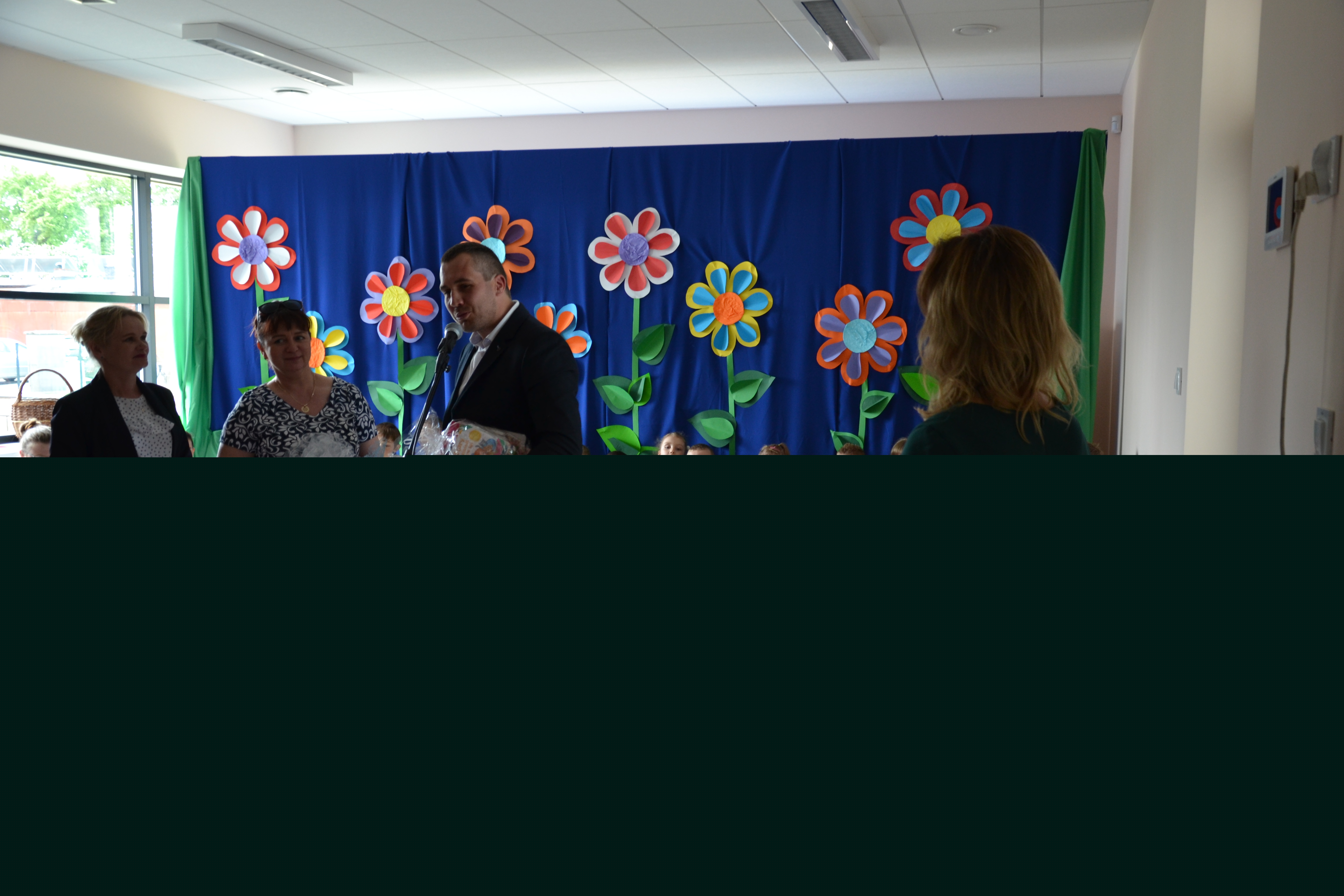 Serdecznie dziękujemy Pani dyrektor Żłobka Anieli Ćwikle za jej zaangażowanie i serce wkładane w ten obiekt. Za czas poświęcony na dopilnowanie bardzo wielu spraw związanych z budową, wykończeniem, a zwłaszcza z wyposażeniem żłobka.