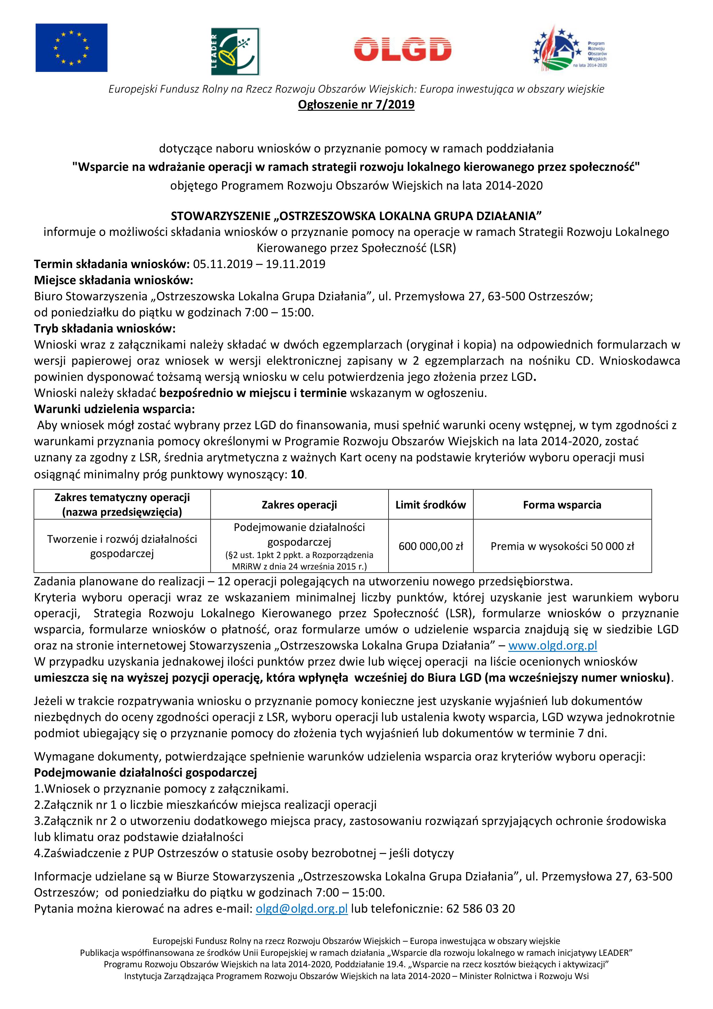 Ogłoszenie o naborze wniosków na podejmowanie działalności gospodarczej