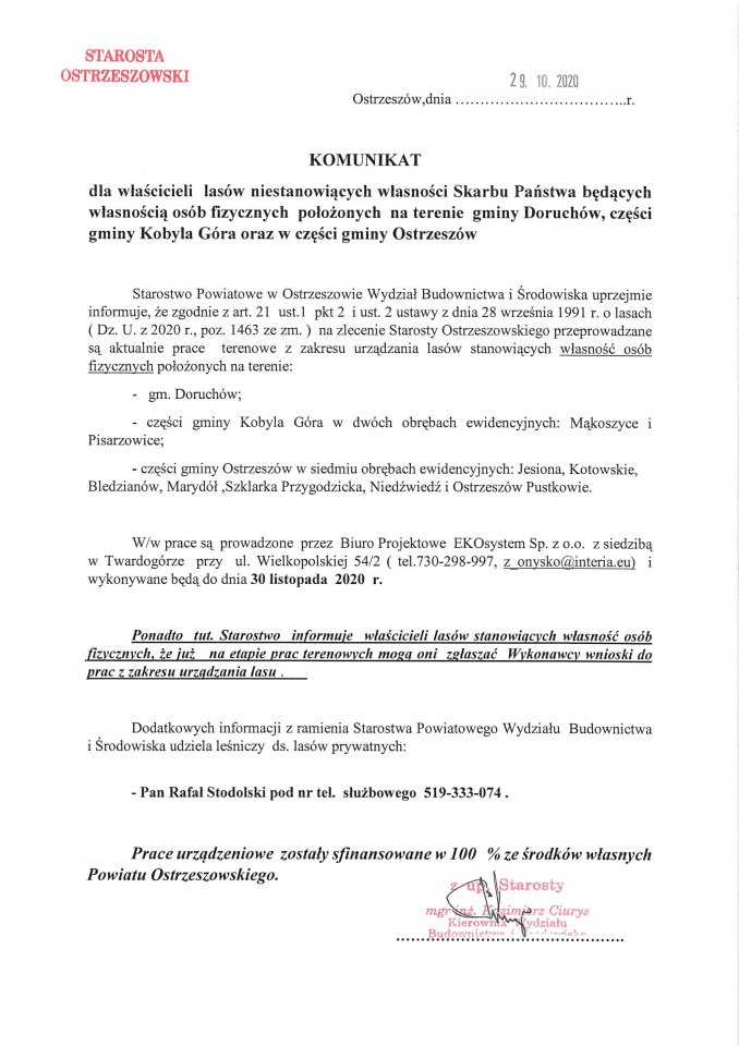 Komunikat dla właścicieli lasów niestanowiących własności Skarbu Państwa