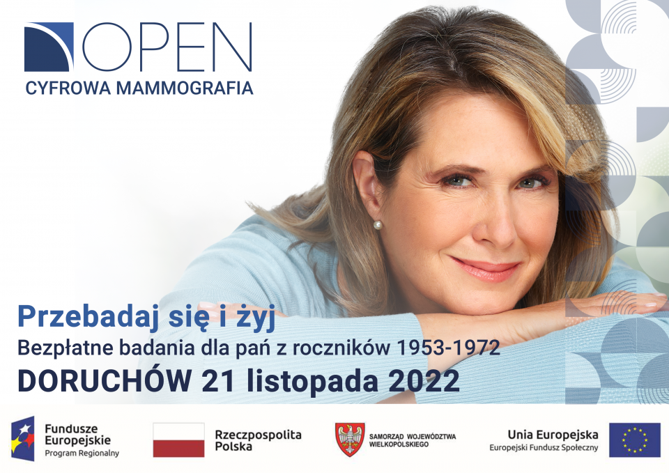 W dniu 21-11-2022 w Doruchowie odbędą się bezpłatne badania mammograficzne realizowane przez firmę Ośrodek Profilaktyki i Epidemiologii Nowotworów S.A. w Poznaniu.OPEN to ośrodek diagnostyczny posiadający status Ośrodka Referencyjnego w zakresie diagnostyki gruczołu piersiowego Siemens.Mammobusy OPEN wyposażone są w najnowocześniejsze cyfrowe mammografy.