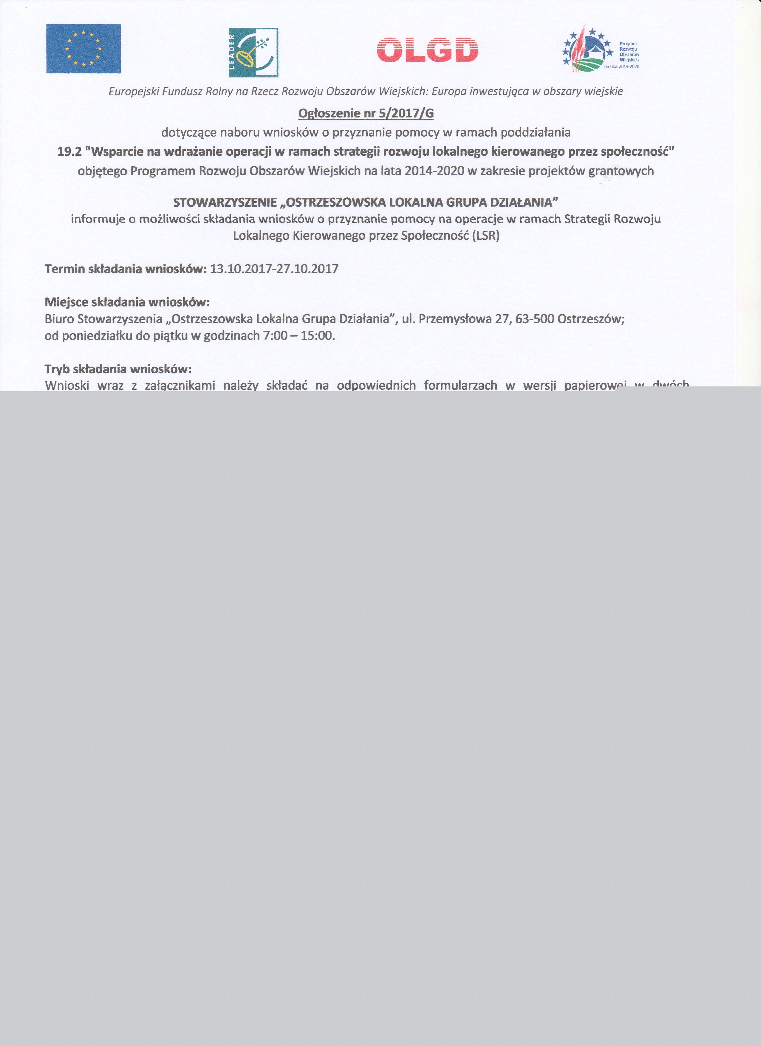 Termin składania wniosków 13.10.2017r do 27.10.2017r.