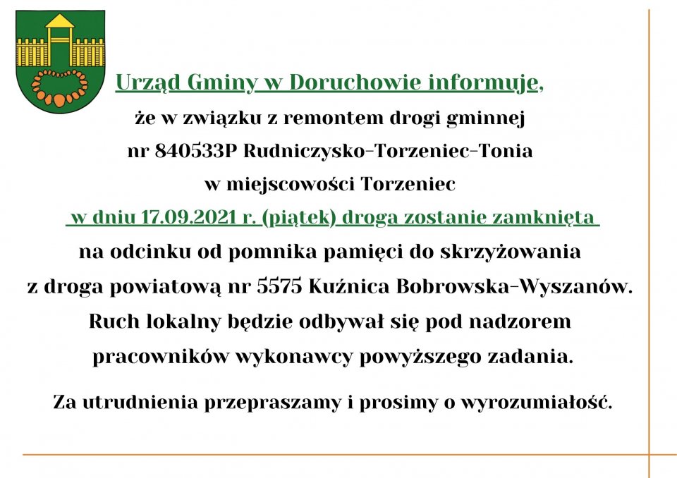 Utrudnienia na drodze gminnej nr 840533P w miejscowości Torzeniec