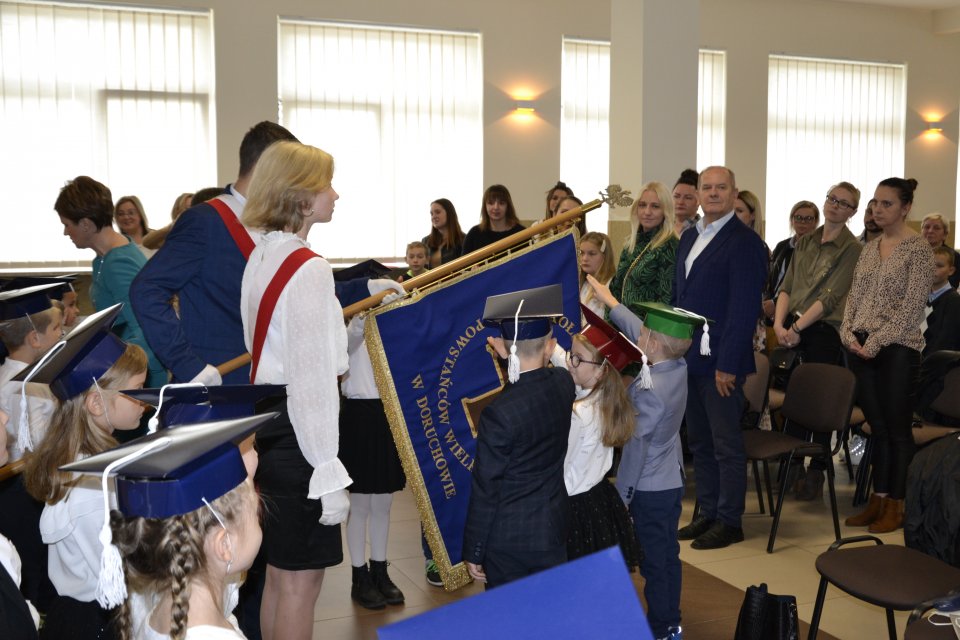Dzień nauczyciela i ślubowanie klas pierwszych w Szkole Podstawowej im. Powstańców Wielkopolskich miało miejsce 14 października 2021 r. w Sali Gminnego Ośrodka Kultury w Doruchowie. Najmłodsi zostali uroczyście przyjęci do szkoły, złożyli ślubowanie pierwszoklasisty i dumnie będą reprezentować rocznik 2021-2029. Wychowawczyniami zostały p. Lidia Przybył, p. Dorota Kusińska-Kamińska i p. Bogumiła Tomczyńska.