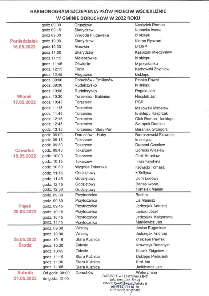 Harmonogram szczepienia psów przeciw wściekliźnie w gminie Doruchów