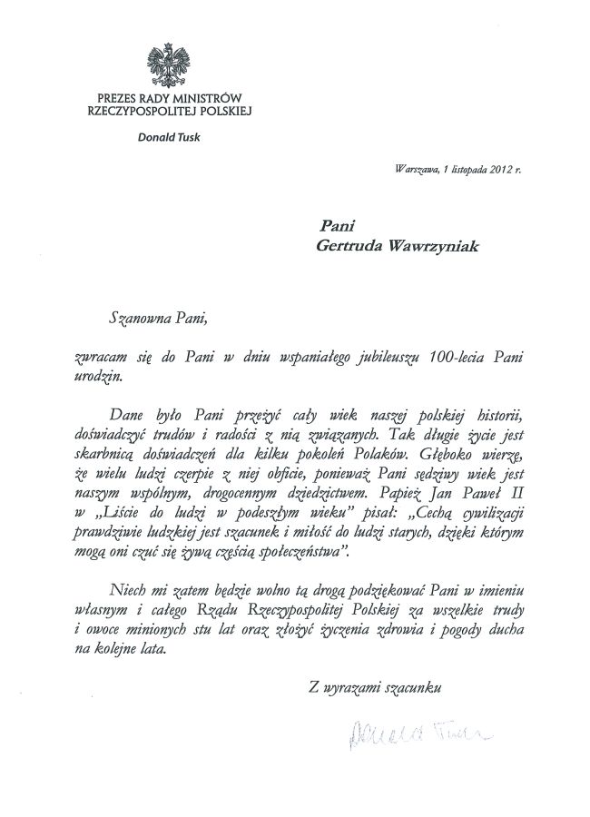 Pani Gertruda wychowała jednego syna. Doczekała się 5 wnuków, 4 prawnuczek i 1 praprawnuka.
