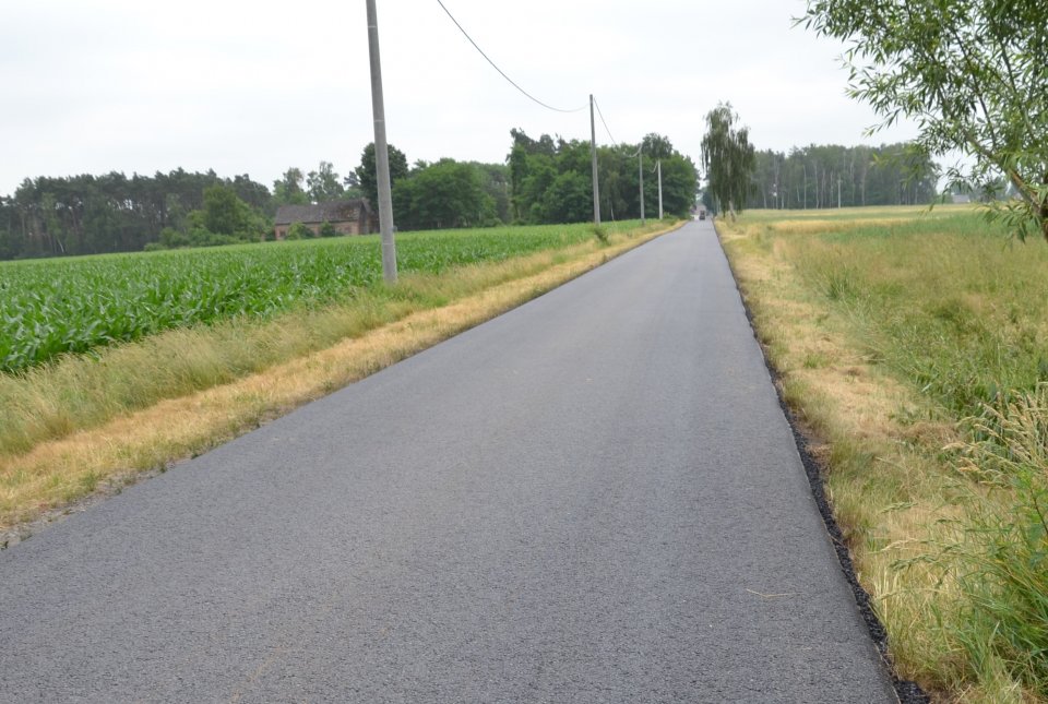 Zakres prac obejmował: korektę krawędzi jezdni na łuku drogi,czyszczenie mechaniczne oraz wykonanie warstwy ścieralnej nawierzchni. Cały odcinek remontowanej drogi to ok 700 m.
