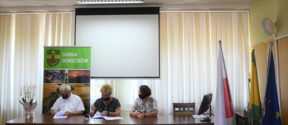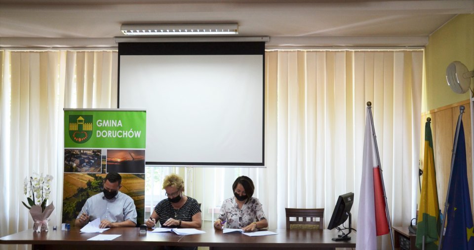 W dniu 18 czerwca 2021 w siedzibie Urzędu Gminy w Doruchowie podpisano umowę na wykonanie zadania pn. "Przebudowa oczyszczalni ścieków w Doruchowie".