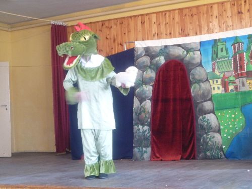 Następnie najmłodsi zostali zaproszeni na spektakl "Legenda o smoku wawelskim" w wykonaniu Teatru "Art-Re" z Krakowa. Dzieci miały niepowtarzalną okazję wystąpienia na scenie razem z aktorami biorącymi udział w przedstawieniu.