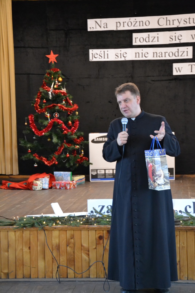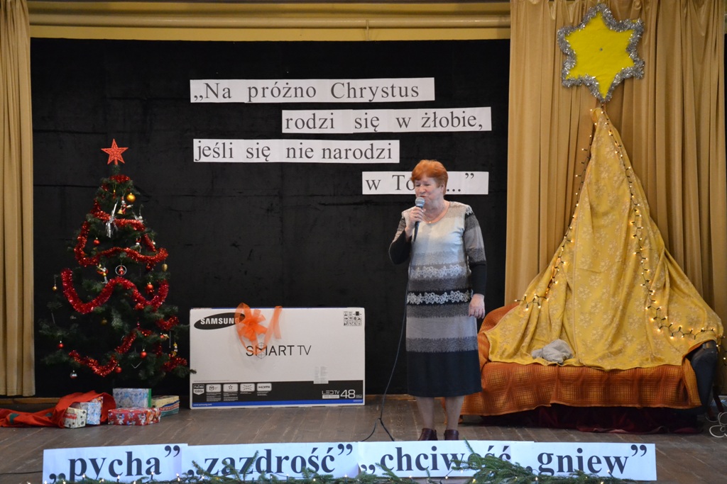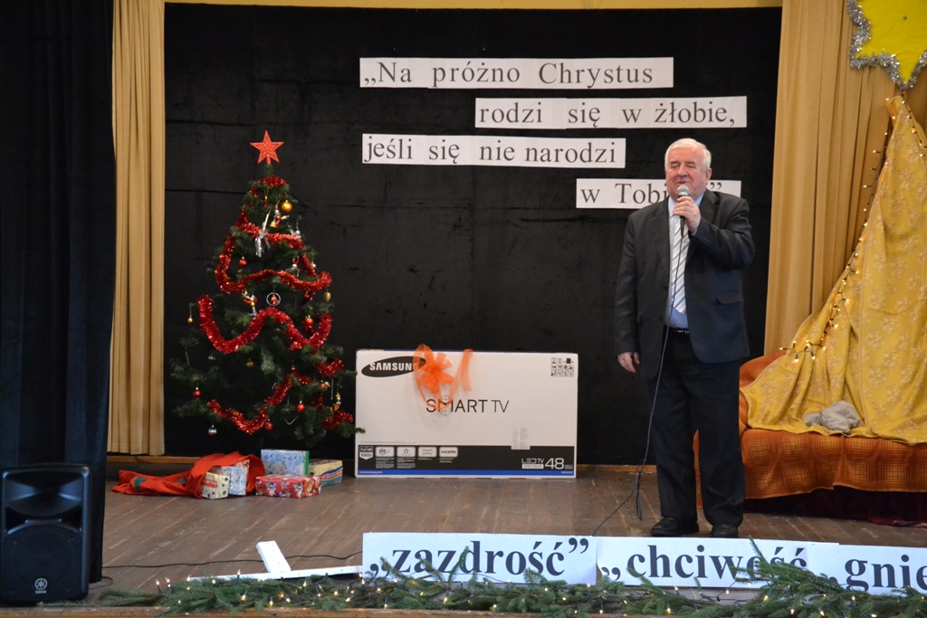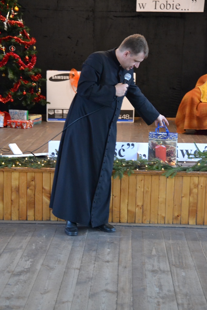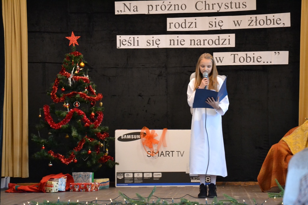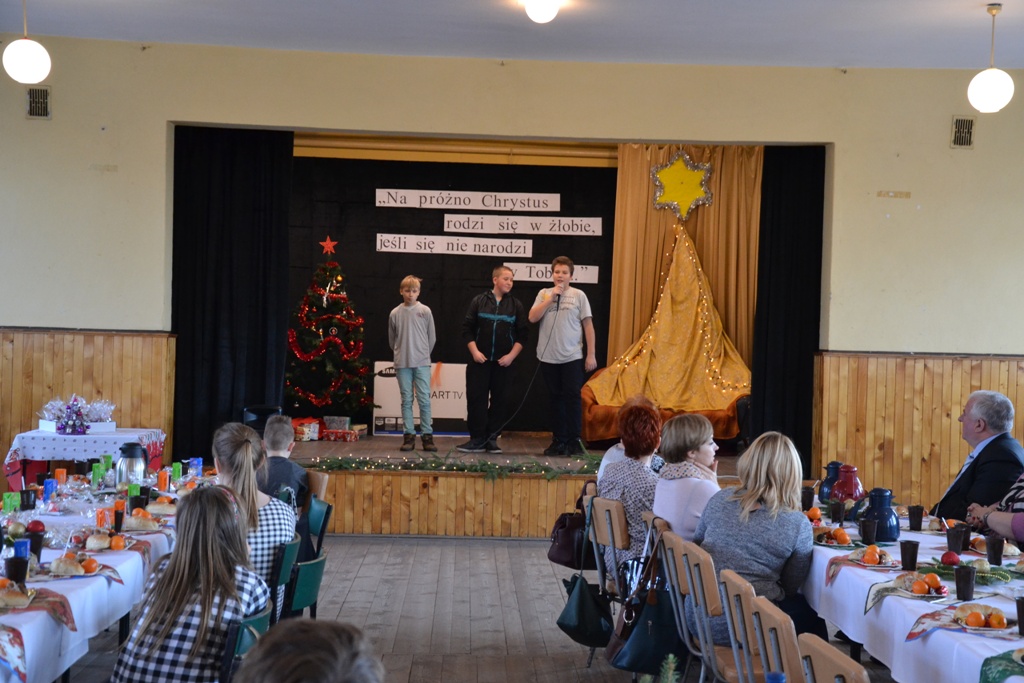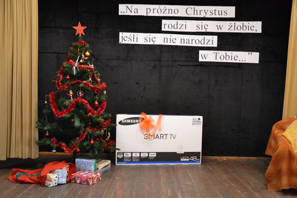 Po spektaklu w wykonaniu dzieci, zaproszeni goście złożyli wszystkim życzenia świąteczne i podzielono się opłatkiem. Dzieci otrzymały słodkie upominki, a głównym prezentem był przeznaczony do Świetlicy Środowiskowej 48-calowy telewizor marki Samsung, który sprawił dzieciom wielką radość. Telewizor bedzie służył wszystkim uczestnikom Świelicy Środowiskowej nie tylko w rozrywce, ale także w nauce i wypełnianiu wolnego czasu.
